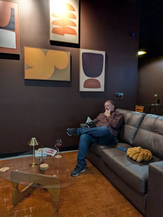 I also had a book outing with my cousin! He took me to Sip and Read in Detroit for my birthday, and treated me to a glass of wine and a book. We had such a great time and we need to go again soon. My treat this time!