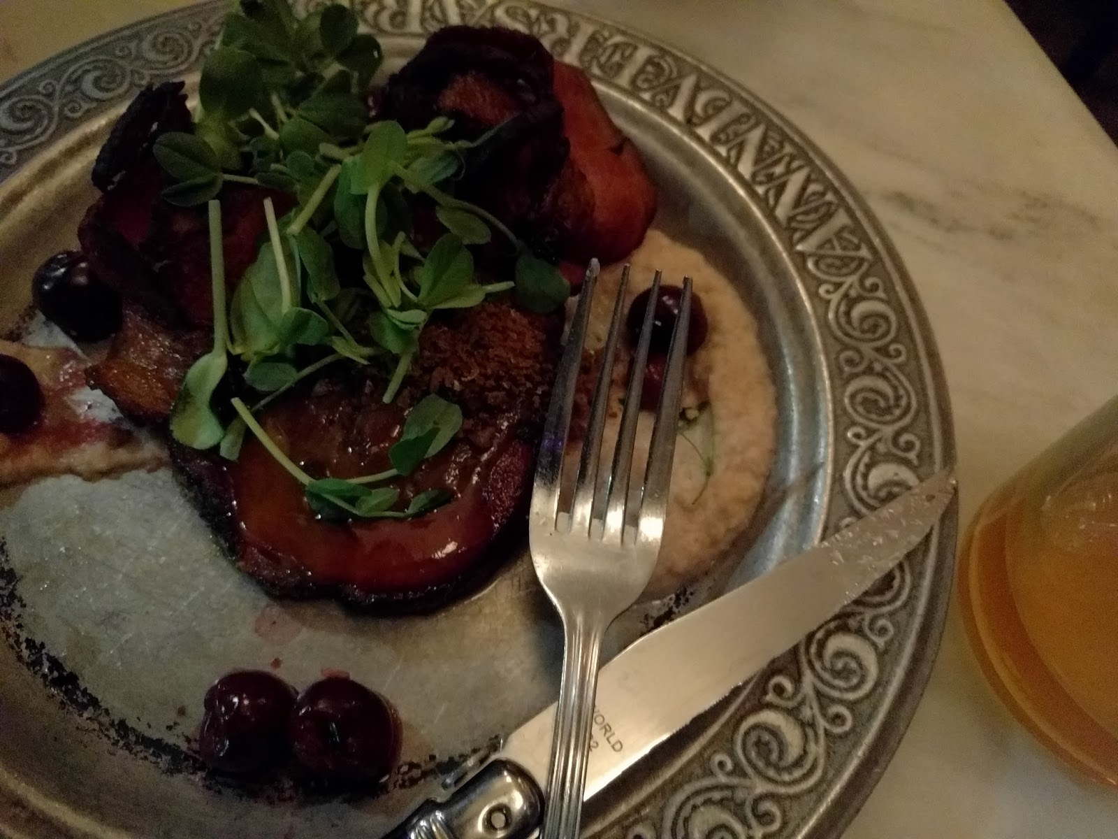 My husband on the other hand, did go crazy over his. He ordered the Pork Steak, which was charred, and served with herbed jam, paneer, cherries and apple. It also had bacon with it.