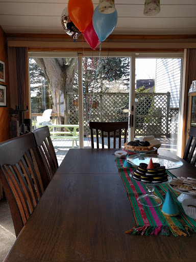 Everyone had such a good time ~ the kids had a blast playing with their milk mustaches that my mother in law made for them, and just being kids in general. They came up with the craziest pretend games, imagining themselves to be unicorns, complete with a “unicorn horn” on their heads, made from what they found around the house and blue painters tape from a drawer. I love when kids play like that! The adults relaxed for the most part, munching on cookies, cake, pizza, and bread sticks. (If you are ever in Tecumseh you need to get