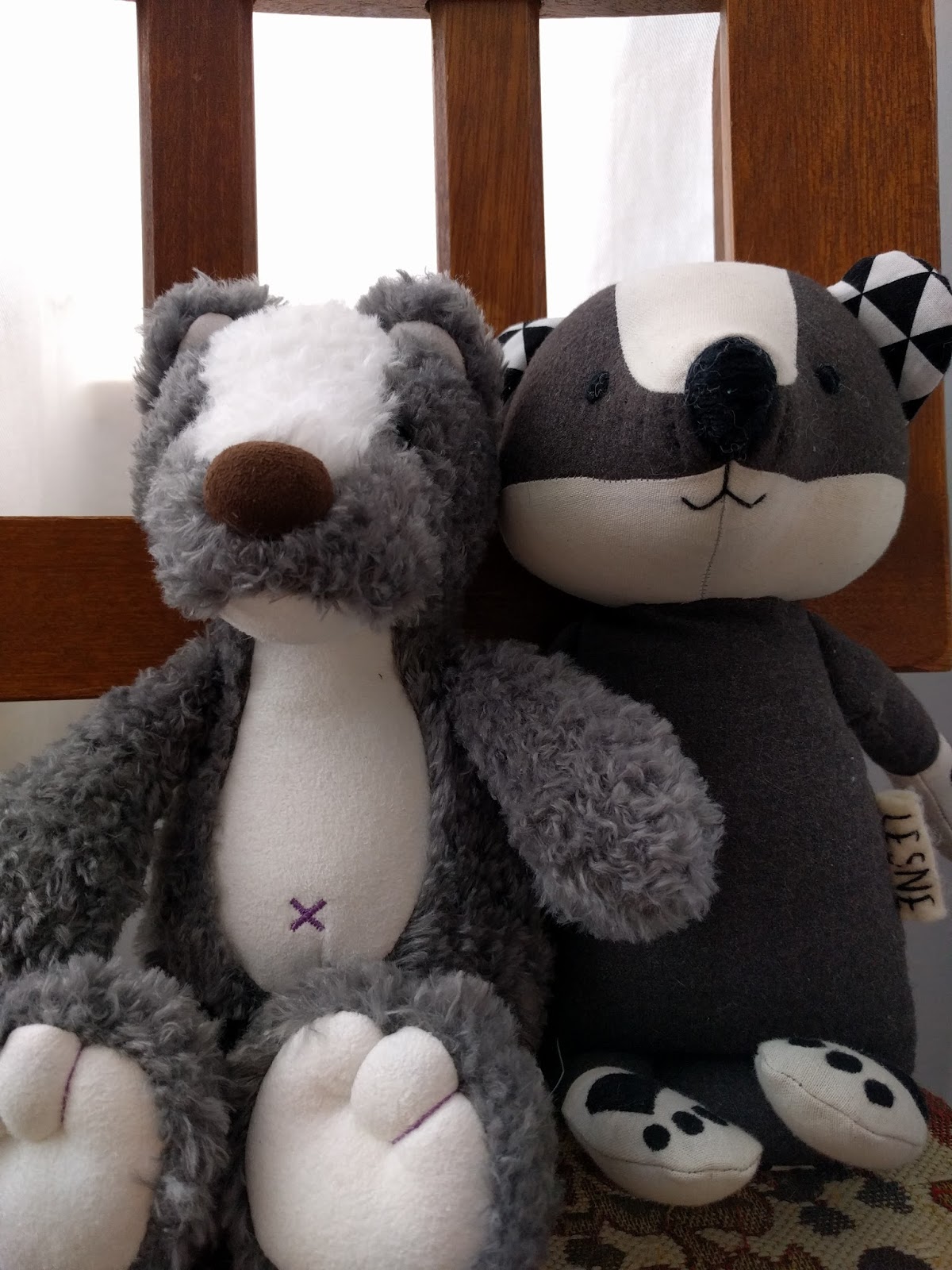 So we now have two stuffed badger friends for the boy. I call them his collection of International Badgers, as Edgar is from England.