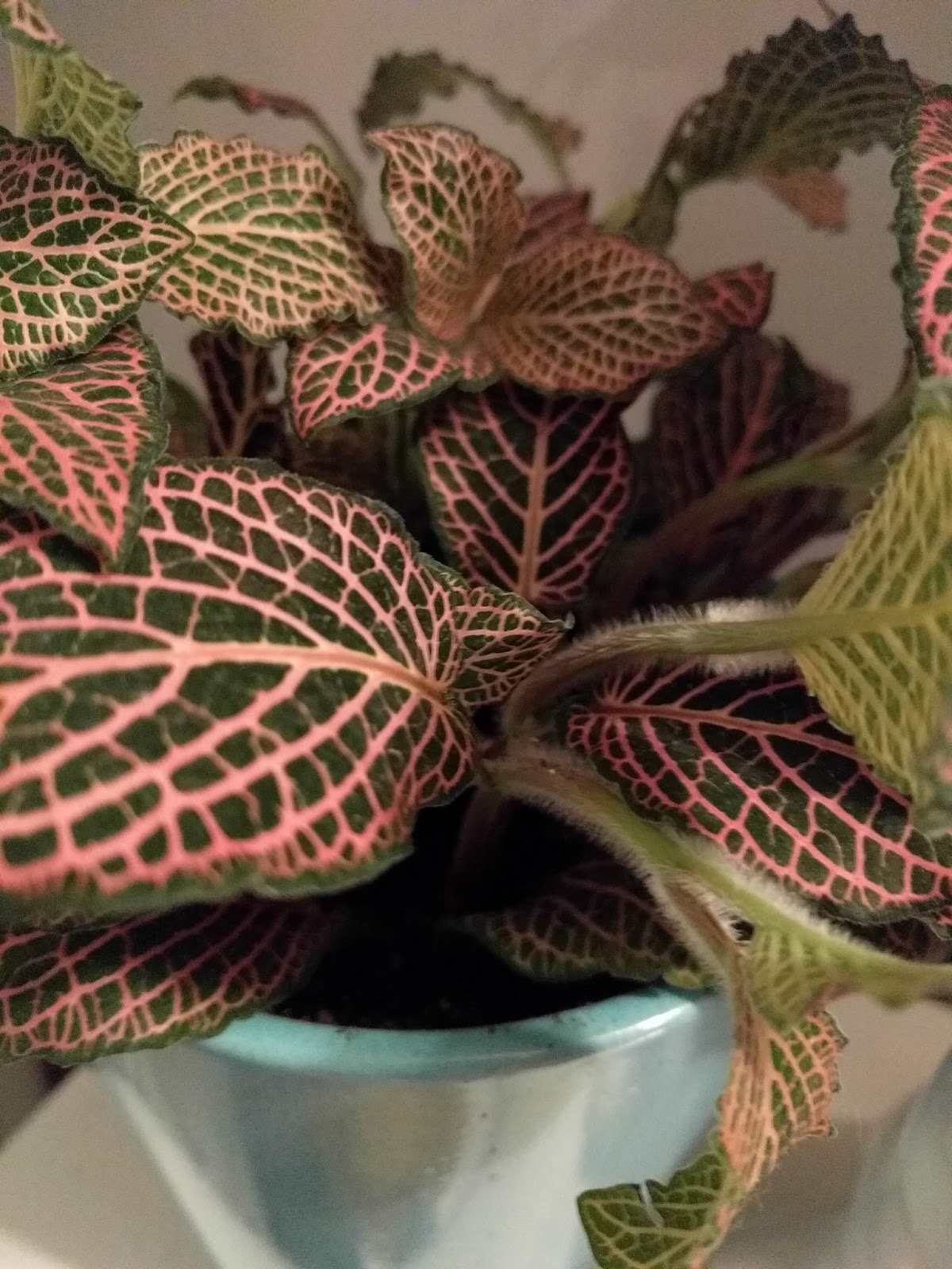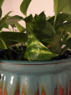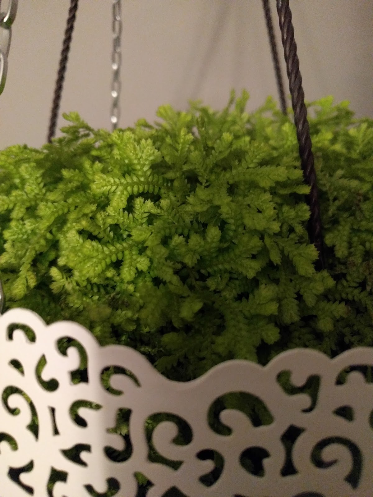 The room is cozy, with cushy overstuffed furniture, warm colors that invite you to stay, an eclectic clutter that draws the eyes seeking out all the hidden treasures – a ceramic bird here, a treasured book there, an oversized ceramic mug that would fit perfectly in your hands. But that isn’t the magic, although it is evident that magic does live there. The magic is found hanging around the room, the bright splashes of green, alive and vibrant. Ferns, with their feathery soft leaves; succulents that are waxy and shine, plants that I can’t hope to identify or recognize adorn the room with their vitality, giving the room and the house and the inhabitants a feeling of enchantment.