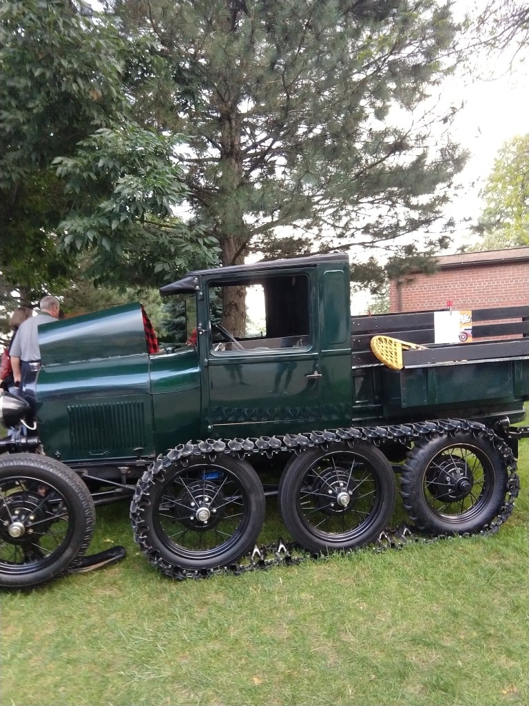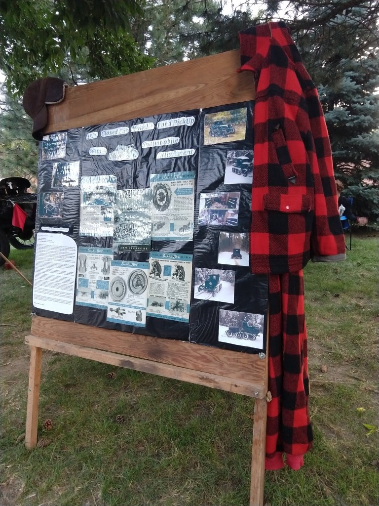 This car is so cool! It can drive in thirty feet of snow, and the owner said that he had taken it out in the snow many times – why not, he said, and really, if I had this I would take it out too! He couldn’t drive it in to the village like that but brought it in on a truck. It is a 1929 Closed Cab Model A Ford Pickup with a super Snow Bird Snowmobile attachment. According to the guy, and his sign. It was used for mail delivery, and I am assuming lots of other purposes too. I think I need one of these to handle our Michigan winters! Lol. And of course the buffalo plaid clothing hanging there – I am a sucker for buffalo plaid anything.