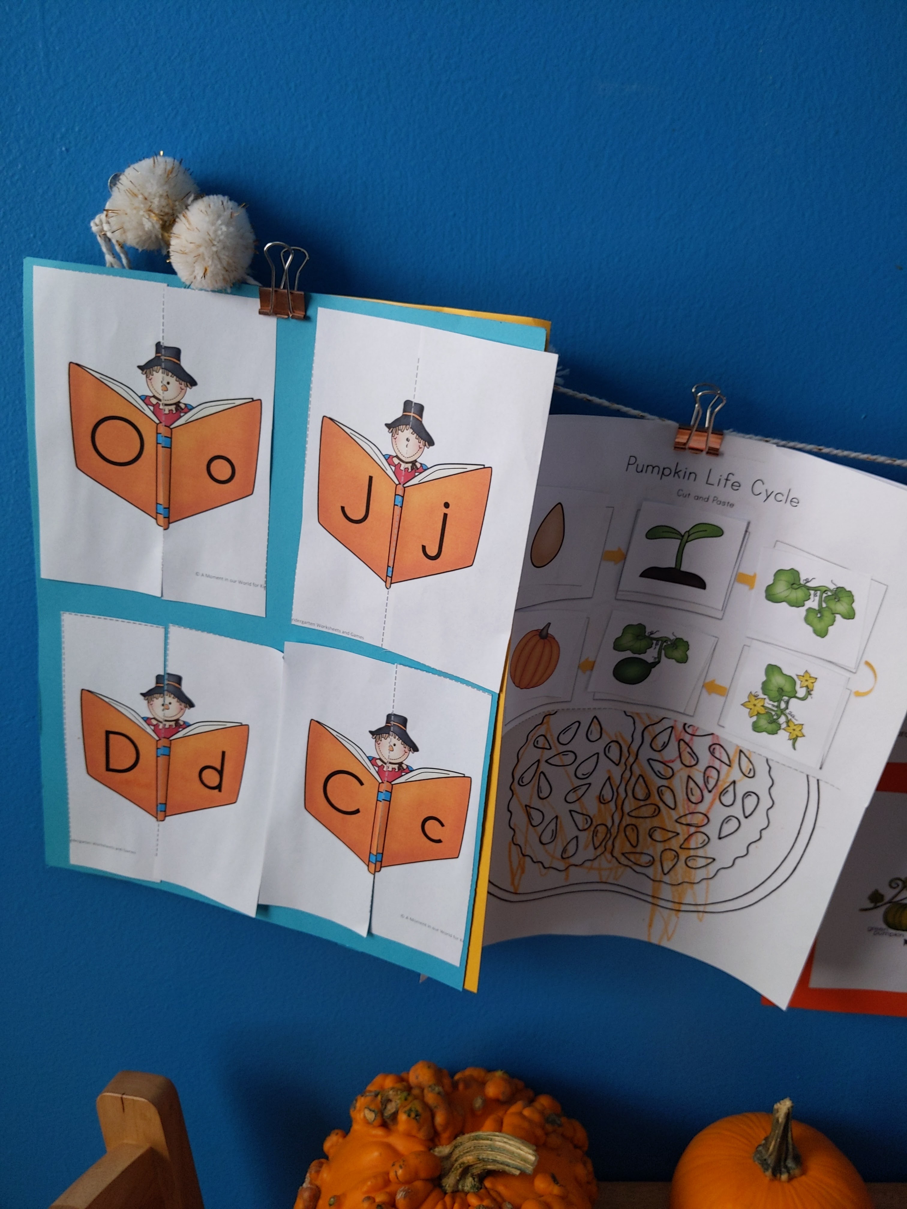 We did a fun pumpkin letter patch, and then matched upper case to lower case letters with a very fall theme.
