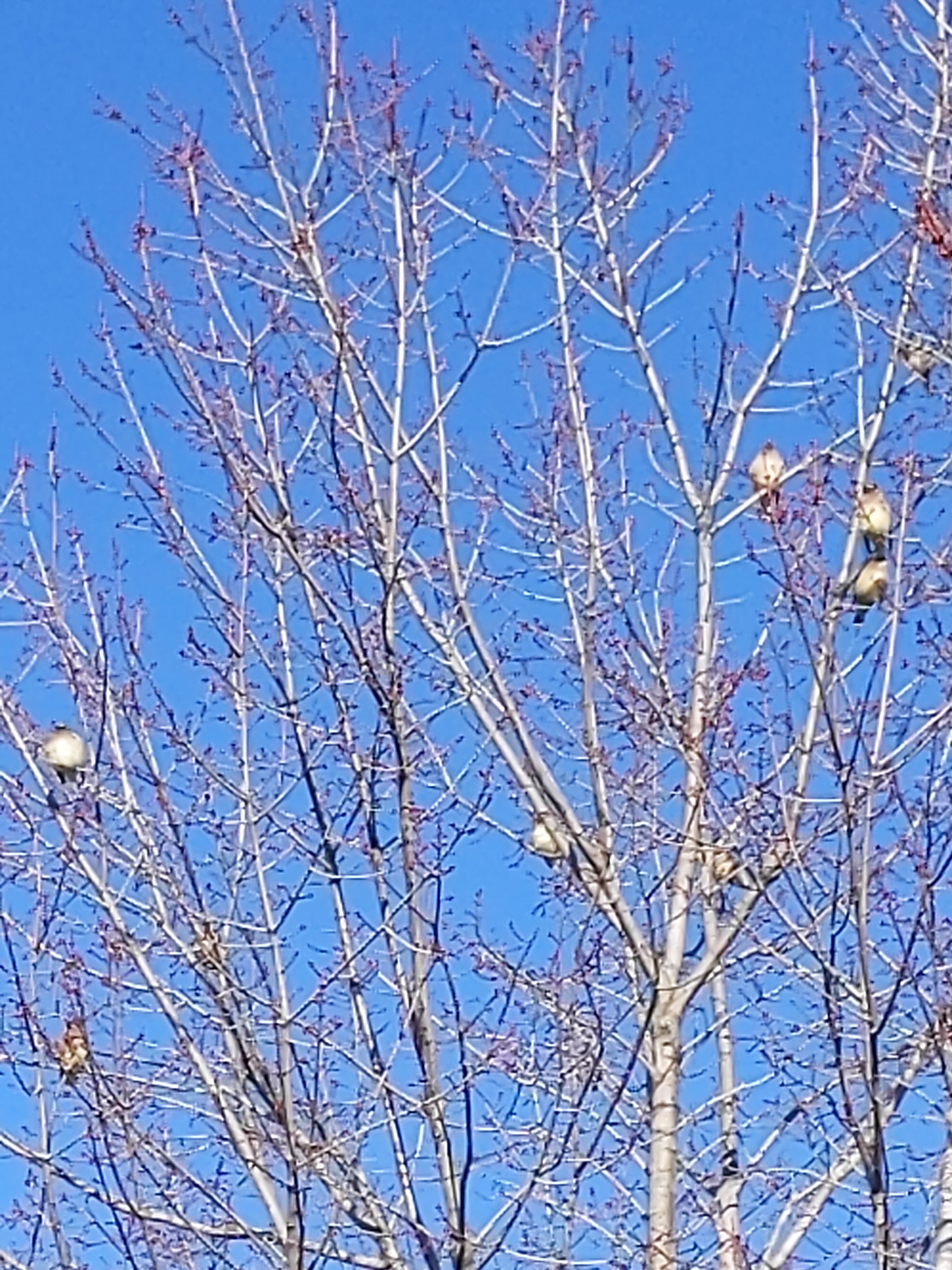 The weather was gorgeous this week, and Wyatt and I were able to get outside in the afternoons. I was excited to see signs of spring, with my strawberries starting to grow, little shoots emerging from the earth from the bulbs I planted in the fall, birds making nests in trees. I had to go get blood drawn this week and I had to wait in my car for twenty minutes as they stagger the number of people who can go in the office at one time. The morning was bright and blue and sunny and I could hear the chirps and tweets all around me. I happened to glance up at the tree next to my car to see it was full of Cedar Waxwings! That was the most I have ever seen at one time and it made me smile. Actually, I got really geeked and texted my husband and sent him a terrible photo from my phone , I was so excited to see them.