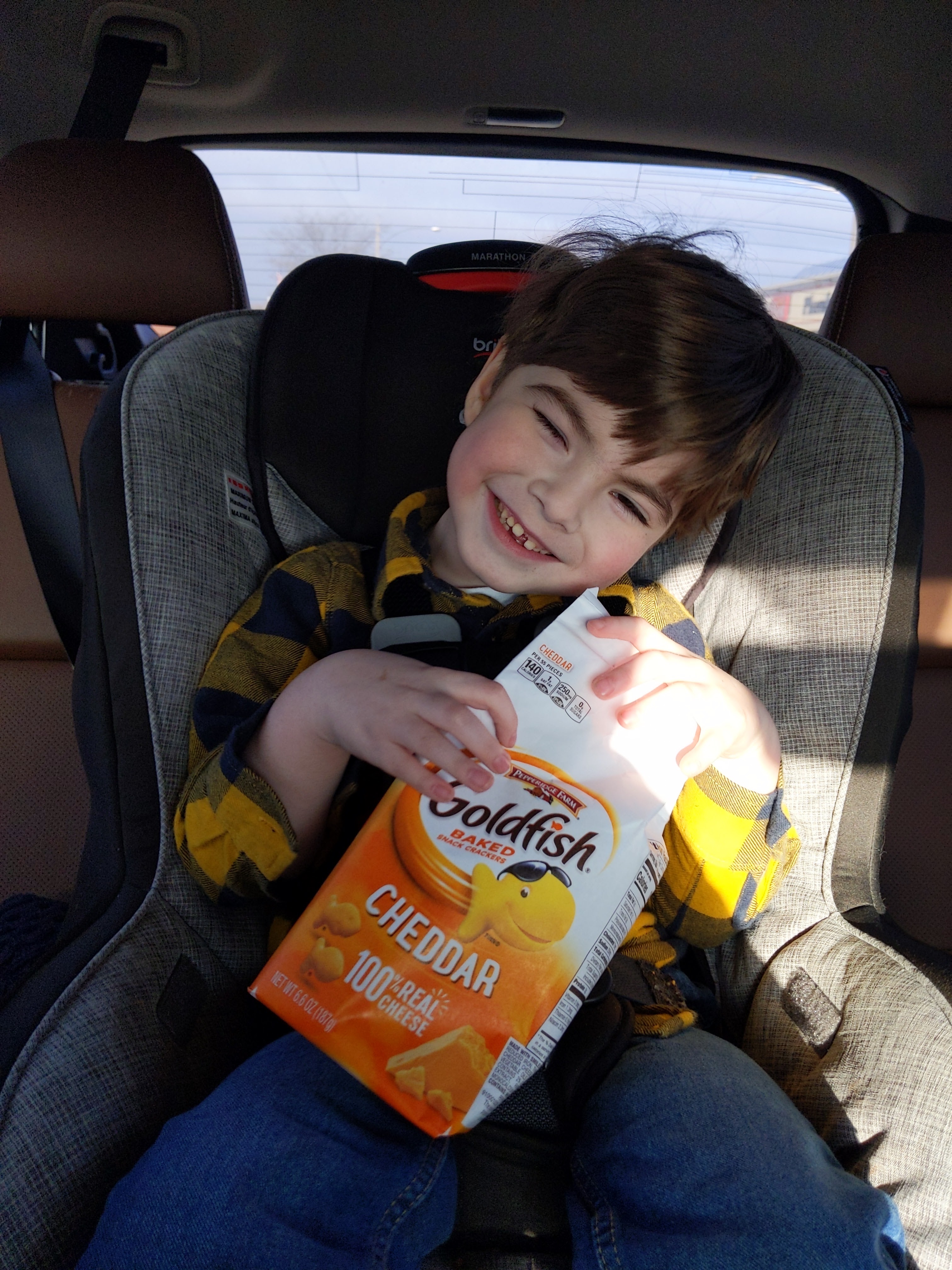 We started early, picking up coffee for us and hash browns for the kiddo before hitting the road. Wyatt decided he preferred Goldfish crackers to his hash browns though. This kid and Goldfish crackers…lol.