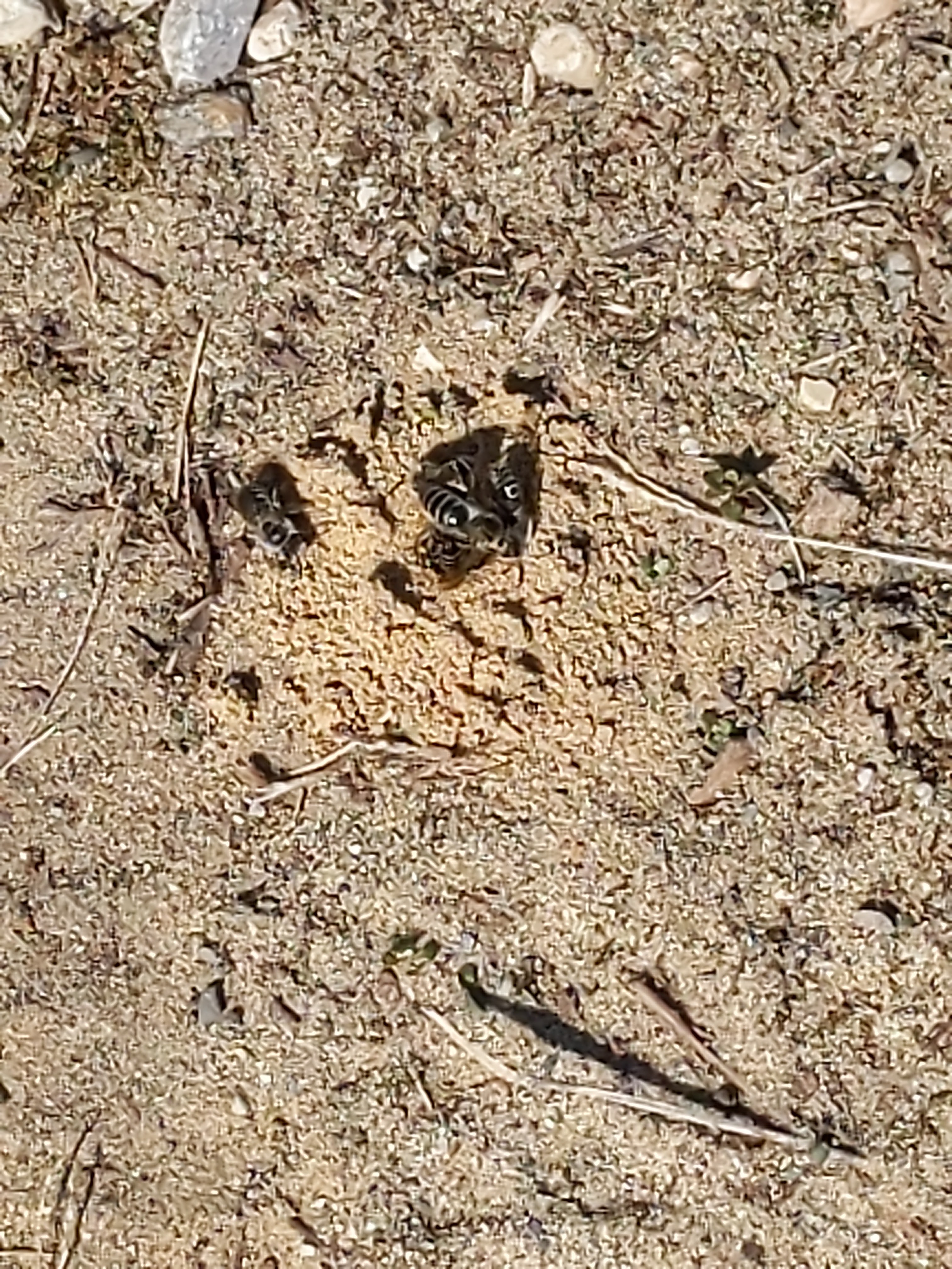 We also stumbled across bees that we called dirt bees, but after some googling I think they are called Mining bees. I could be wrong though.