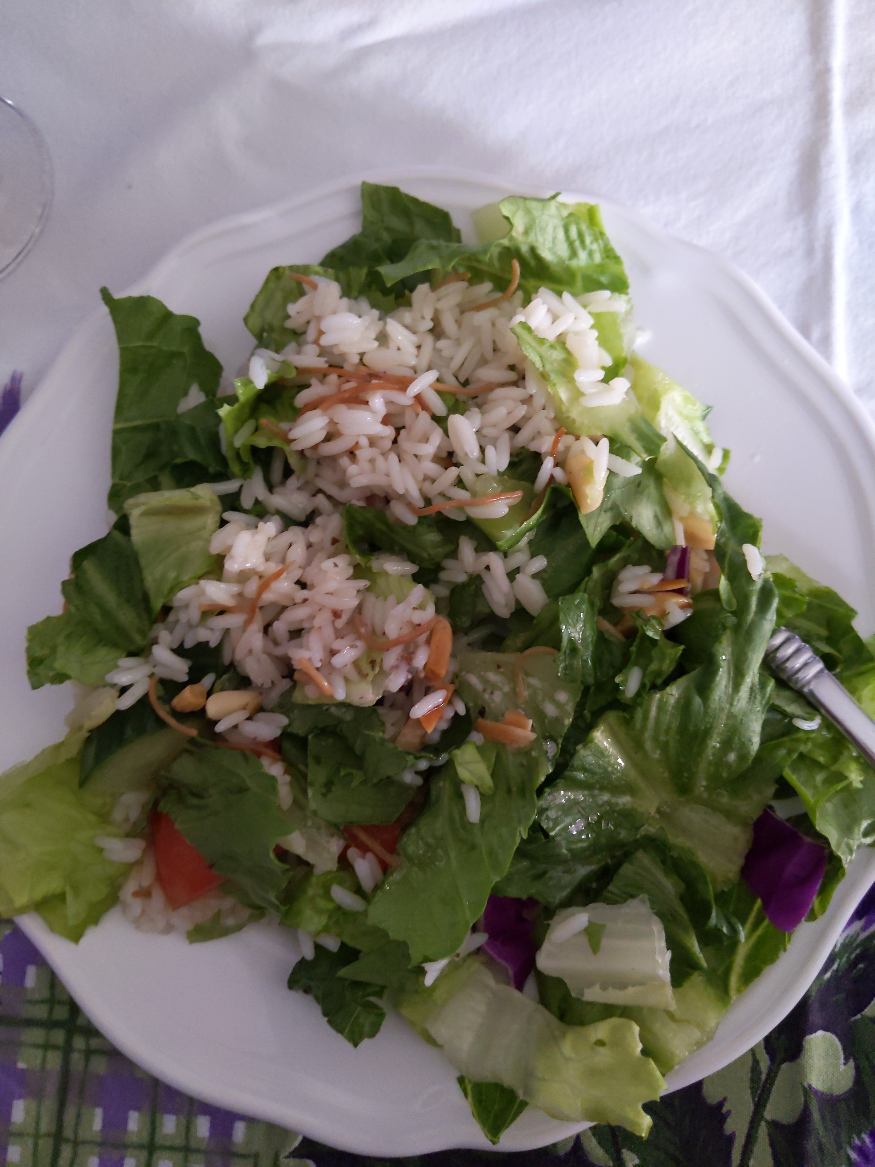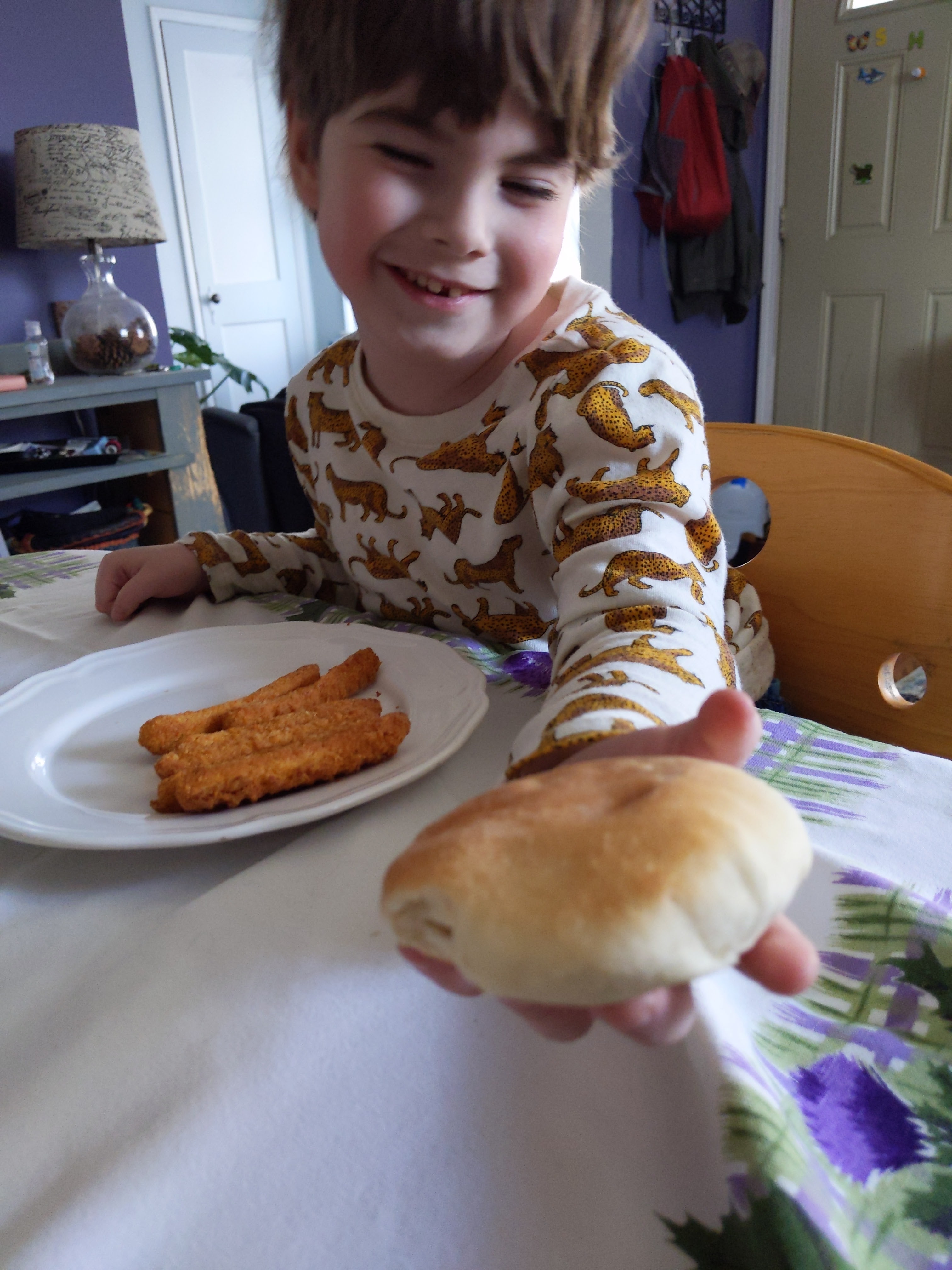 Then in the afternoon we just relaxed. We had two driveway visits but for the most part we just chilled out for a few hours before ordering dinner. I decided that this year since it was just the three of us we were going to order Middle Eastern, one of our favorites. I had rice almond salad which is so darn good, hummus, and of course, hot bread. Wyatt loves the bread too, but otherwise he stuck with chicken fries.
