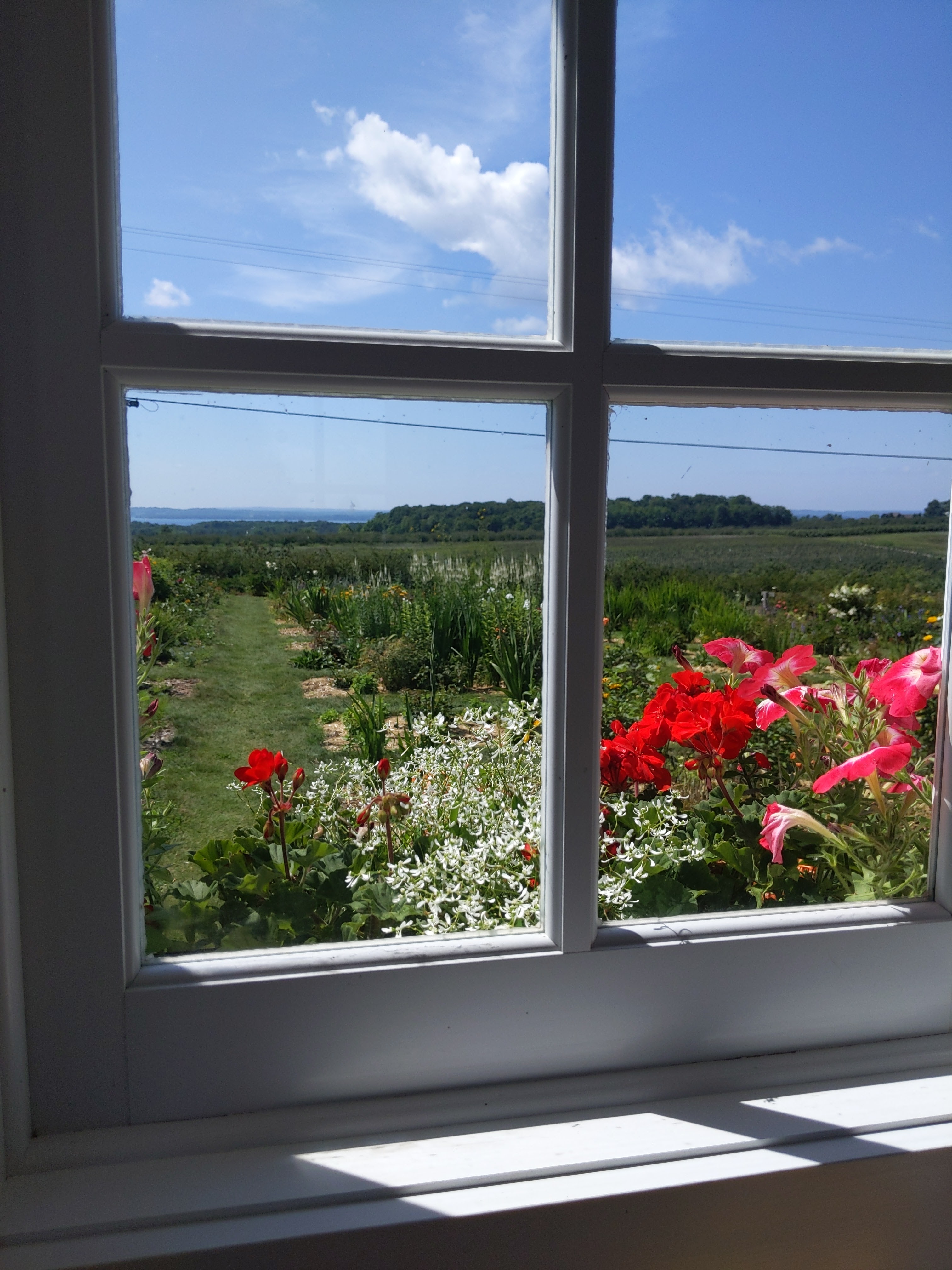 First stop was the lighthouse. We walked around a bit, then I asked Wyatt what he wanted to do next. He requested a picnic, since this kid loves them. For real. We got back in the car and found a place that sold deli sandwiches to go, the Bad Dog Deli. I had also spotted a sign for a place called Old Mission Flowers, and when I looked it up, found that it was a U-Pick Flower stand. Right up my alley, and just about the perfect setting for a picnic! We ate our lunch swinging our feet from the back of the Subaru, looking out at the wonderful color of the flowers, the hummingbirds playing, butterflies floating from flower to flower. I thanked Wyatt for suggesting this idea, we would have probably missed all of this beauty without his picnic request.