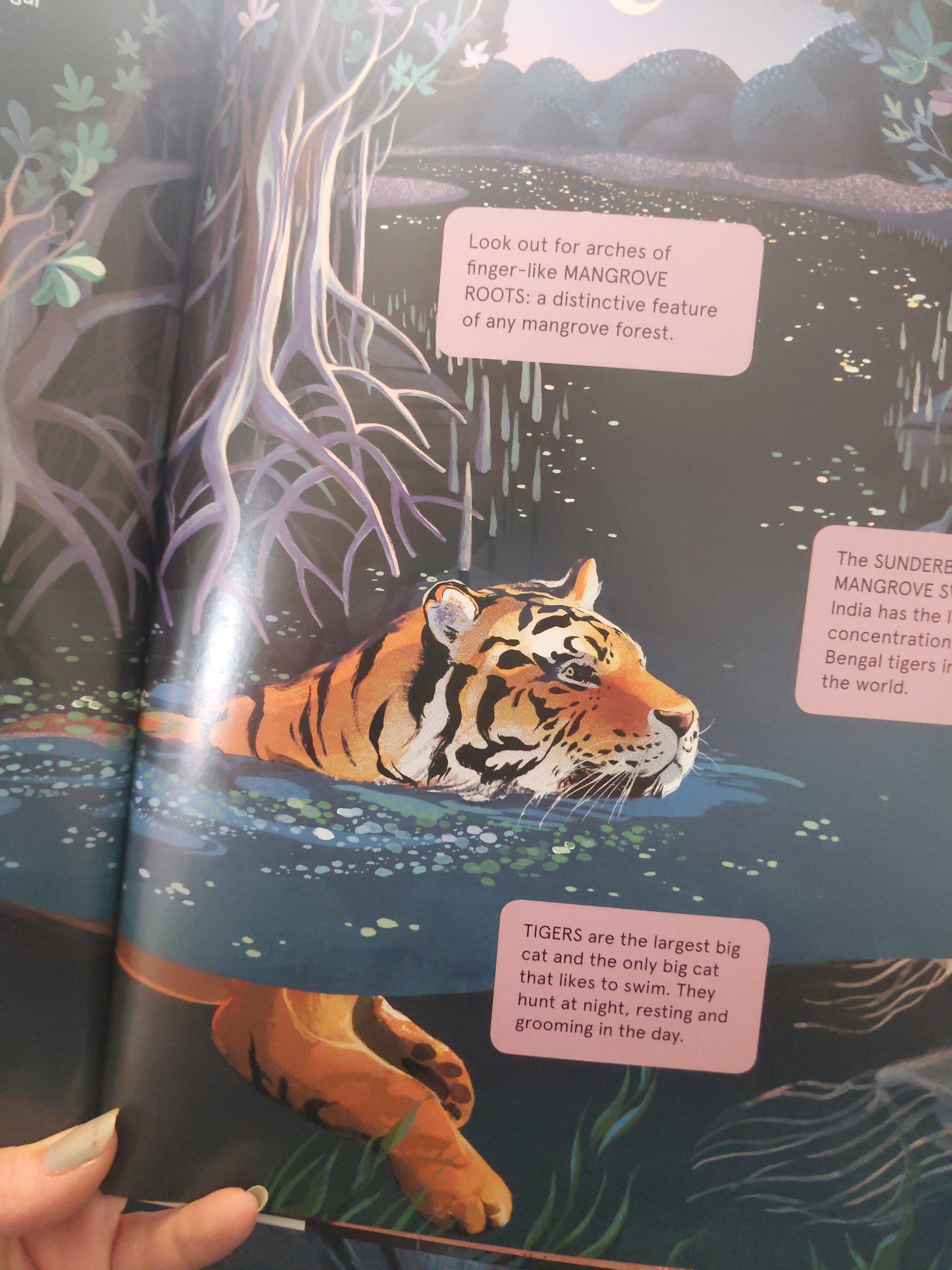 Animals at Night is really cool. It’s a nonfiction book about, you guessed it, animals at night. Wyatt is all about tigers these days so we spend a lot of time on that page. Plus, it has a glow in the dark poster so bonus. The illustrations are gorgeous so I can look at it all day as well honestly.