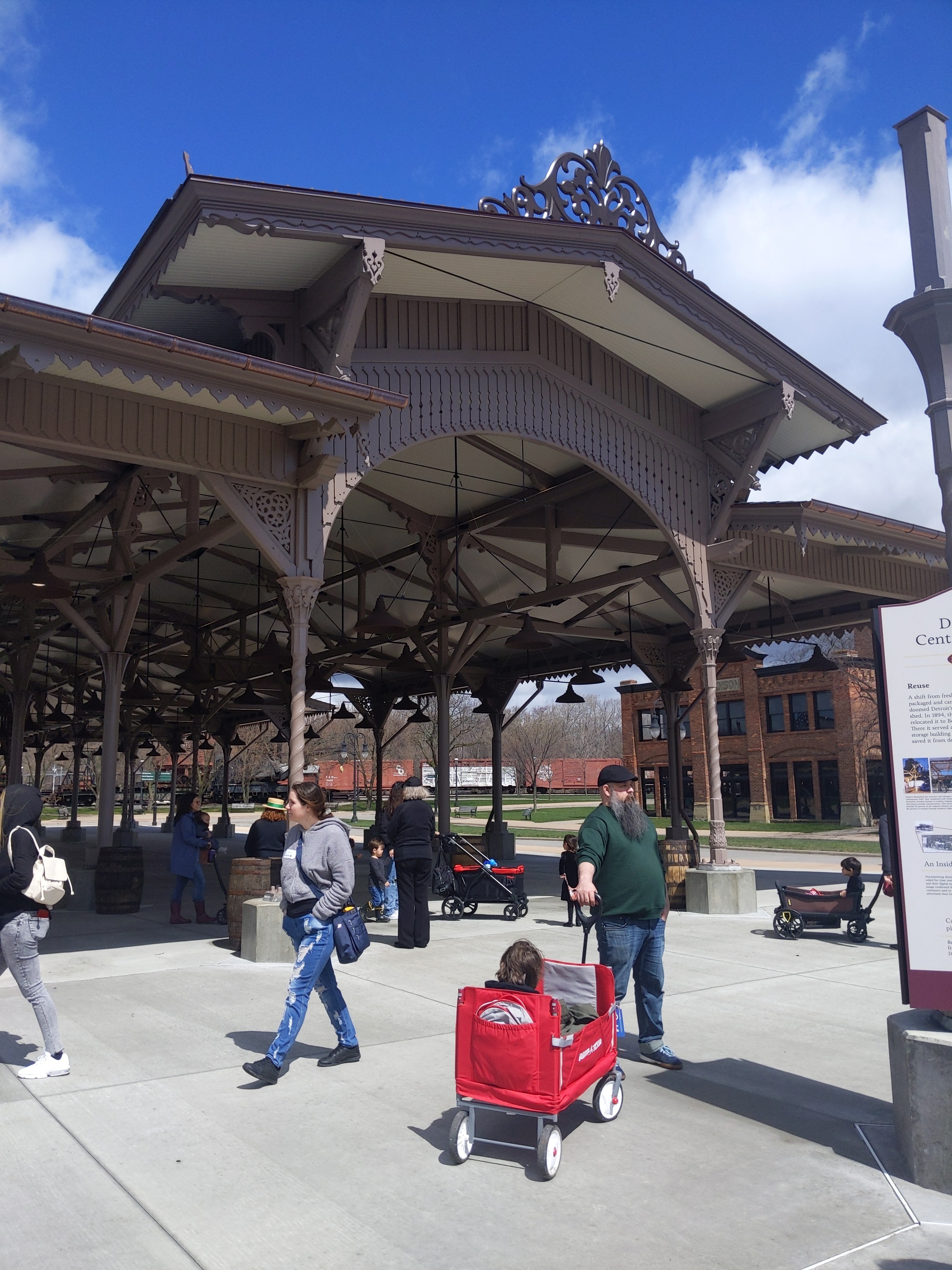 This pavilion is new. Well new to the village at least. It was originally part of Detroit’s Central Farm Market, and was built in 1860 and closed in 1890. It was moved to Belle Isle until eventually falling into disrepair. The Henry Ford bought the building before it was destroyed in 2003 and reconstructed it at Greenfield Village, where I believe they plan to use it for their own farmers market filled with the produce and products grown and made there. I am excited to check it out!