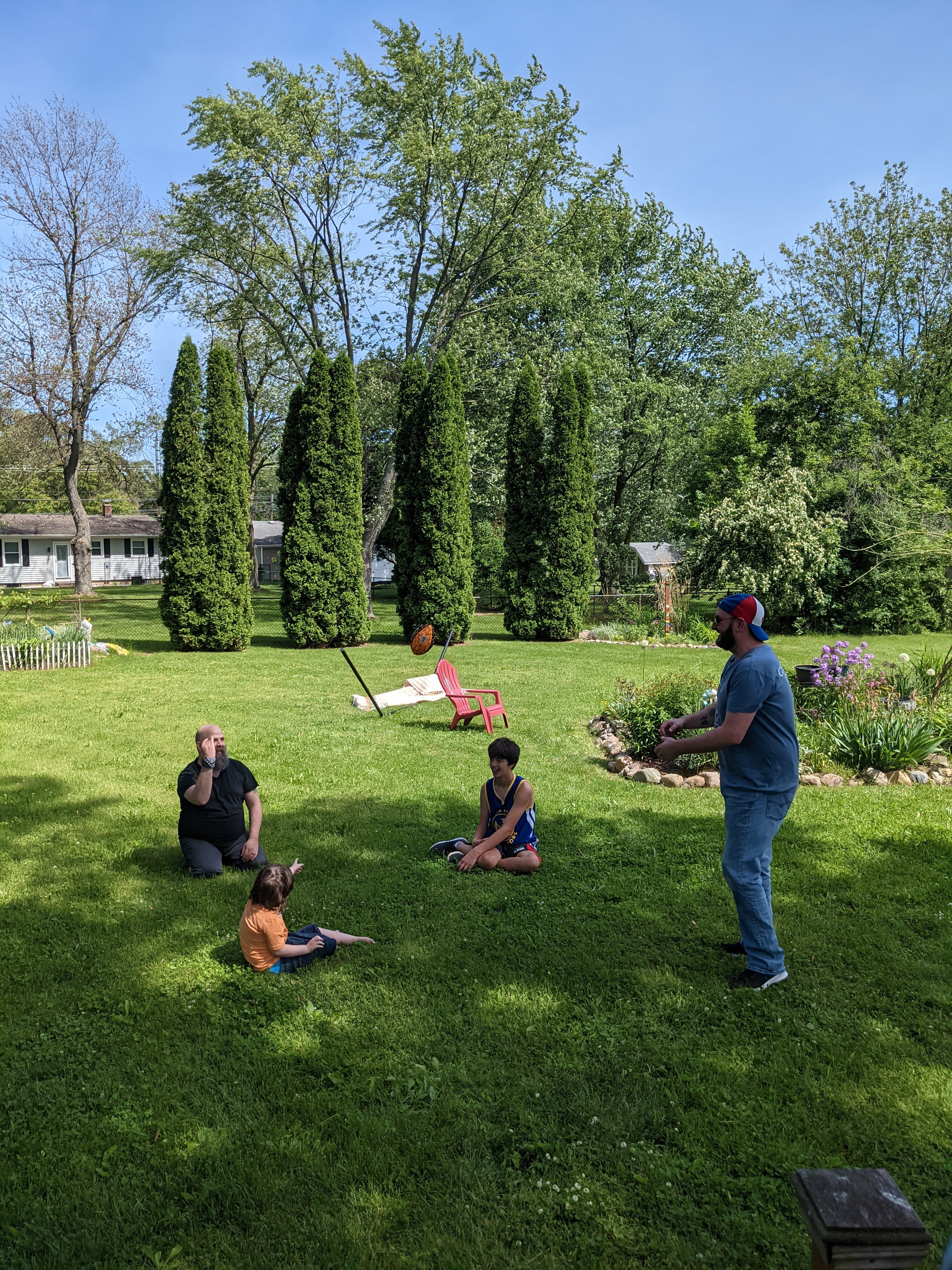 We wound up the evening enjoying ice cream sandwiches on the porch, watching the birds… and rescuing them. A fledgling fell from the tree into our busy street, with two nearby cats on the prowl. I couldn’t let it just fend for itself, so Billy rescued it by scooping it up in a towel and putting it back in the crook of the tree, next to its nestmate. It was so super cute!!