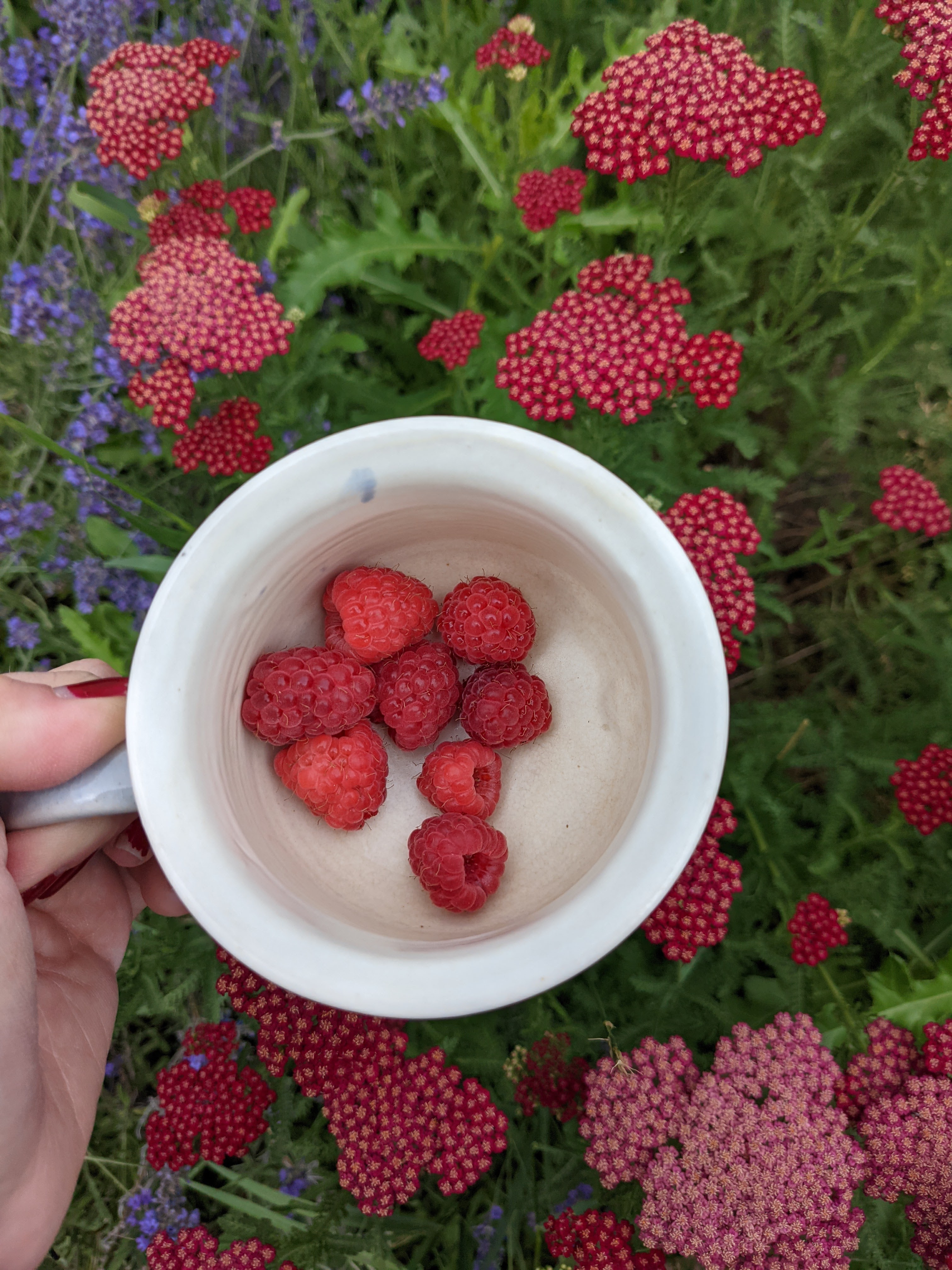 That yarrow (paprika variety?) is so pretty. At least I think that’s what it is (in the photo with your raspberries and butterfly). And what a stunning shot of the butterfly. That photo would make for a great puzzle. 🙂