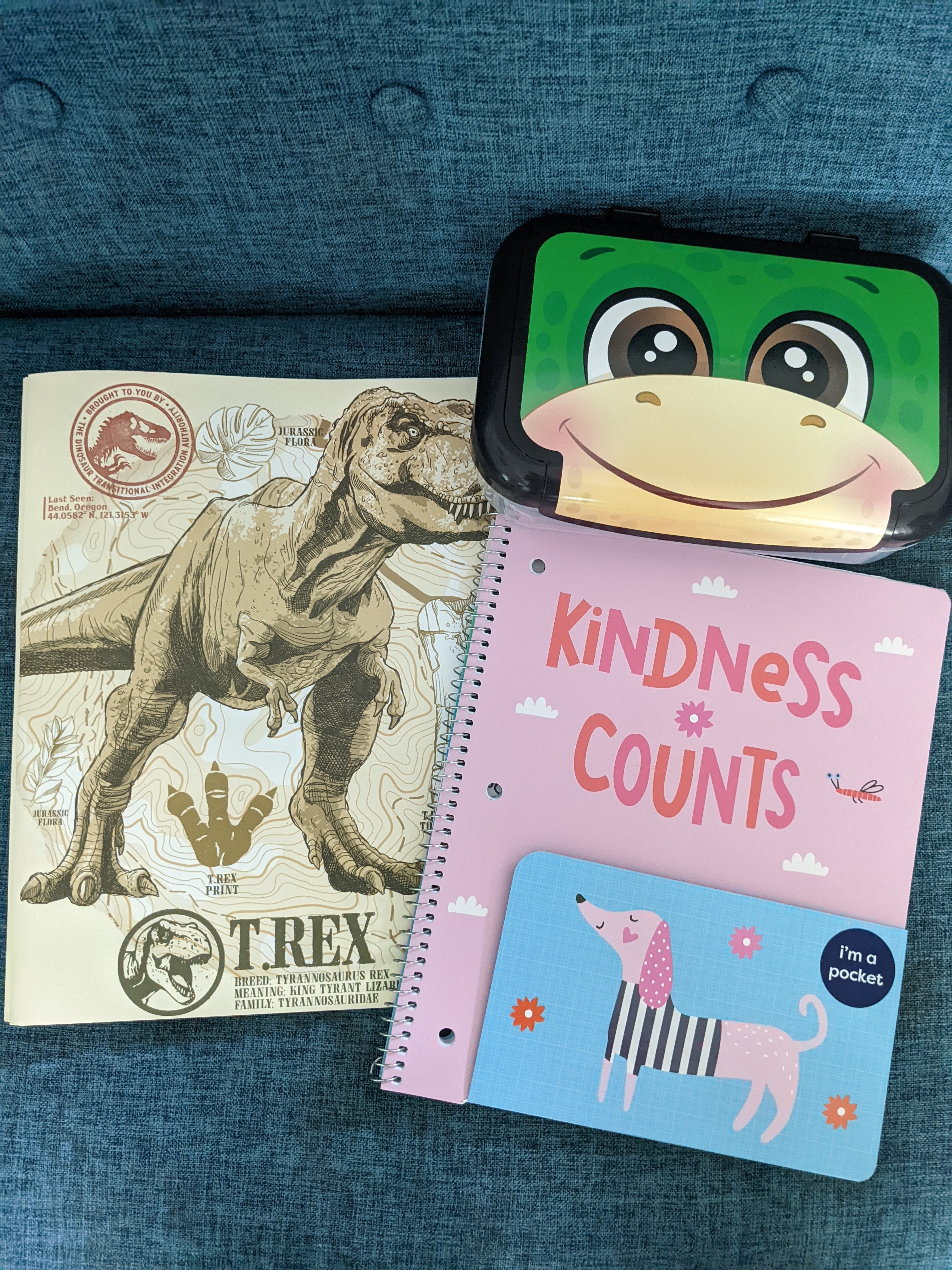 I am also working on ideas for our first day of school, to make it feel like the first day and special, which can be sort of hard when you homeschool. I did take Wyatt back to school supply shopping the other day (and I have since decided that for all future Target runs I will leave my two guys at home as they zoomed through the store without stopping every 100 feet to look at stuff) and let him pick out some stuff to use. I will say he has eclectic taste!