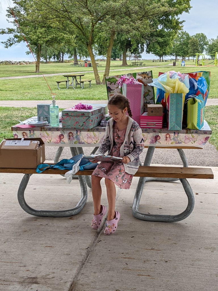We had my little niece’s birthday party yesterday. No surprise, Mermaid Girl wanted a mermaid theme! Well, mermaid/fairy, her two favorite things right now. It was a weirdly autumn like day, very cool temps, and I even found some yellow leaves on the ground. It was a very fun day though, the kids enjoyed playing on the playground, I enjoyed visiting with family, and of course eating the cake. We also took a little nature walk which was lovely. Lake Erie was looking mystical and perhaps, full of mermaids…