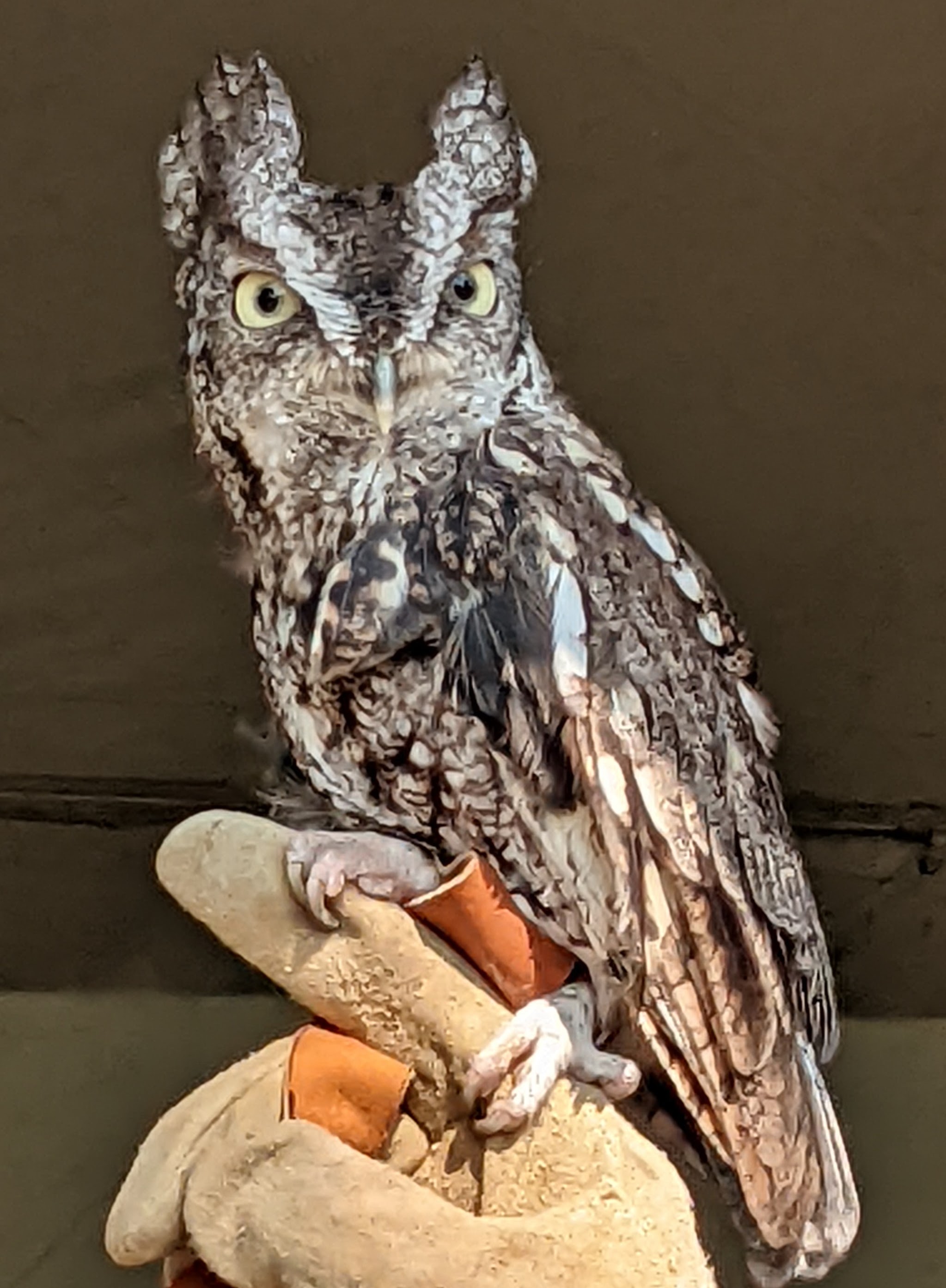 That’s a good photo of the screech owl. I like hearing one in the woods nearby us but haven;t heard him this year, yet.