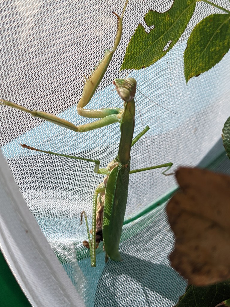 My life would not be complete without a nature story. After Wyatt’s physical therapy – which he rocked like a rock star – I was getting in the car and noticed a praying mantis, looking pretty dead but fully intact. It was in the parking lot and I couldn’t bear the thought of it getting run over. I know, I am super weird but things like that bother me. Anyway I scooped it up with my Kroger receipt, and put it in a bag I had in my car and took it home, having no idea what I planned to do with it. Probably just dump it in the garden honestly. When I took it out of the bag though, I thought I saw it twitch. I thought I was crazy. Then I remembered the night before had been so cold, and maybe this mantis had just been too cold to move. So I put it in a butterfly enclosure on the porch in the sun to warm it up safely. And fifteen minutes later, it was moving around. However it is injured, so I will just let it live in the enclosure I guess until it no longer is alive, then dump it in the garden.