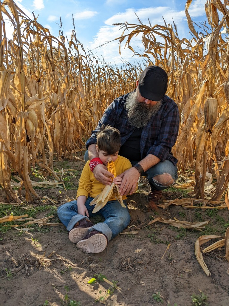 Billy and I enjoyed our drinks while Wyatt played in the dirt, because we are those parents. You would never guess that up until two years ago Wyatt would not sit on the grass or touch dirt by how filthy he is here, but it took me years of working with him to get to this place. We were all in a place of happy. The orchard we go to makes their own hard cider and we always treat ourselves. I had a cranberry cider while Billy had elderberry, and both were so good.