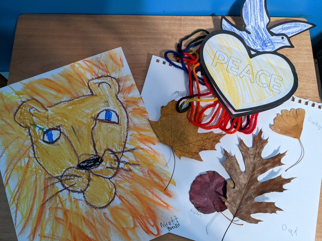 You and I would have made a good team teaching! I never stressed about dates or state capitols. Maps and books (and google) are good for that. What’s important is the culture and the real guts of the area! You are doing such a wonderful job showing Wyatt this country…pulling in all of those different areas, too! Wyatt’s lion is really, really good! Aren’t pastels the most fun? Those peace hearts are such a good idea, too! I love how you are introducing and reinforcing the idea of peace! We all need that!