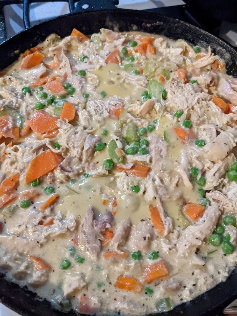 We continued on with our cozy little happy day all day. My mom came over for dinner, and I made a chicken pot pie for the first time. The recipe was for a “French inspired” version, and was sort of a semi-homemade variety. I felt like it was a good place for me to start, and it was freaking delicious. My tiny mom even ate two pieces! It was easy and the hardest part was waiting for it to rest ten minutes. Mine was not as artfully arranged or pretty, but dang it tasted good. I’ll nail the presentation next time maybe.
