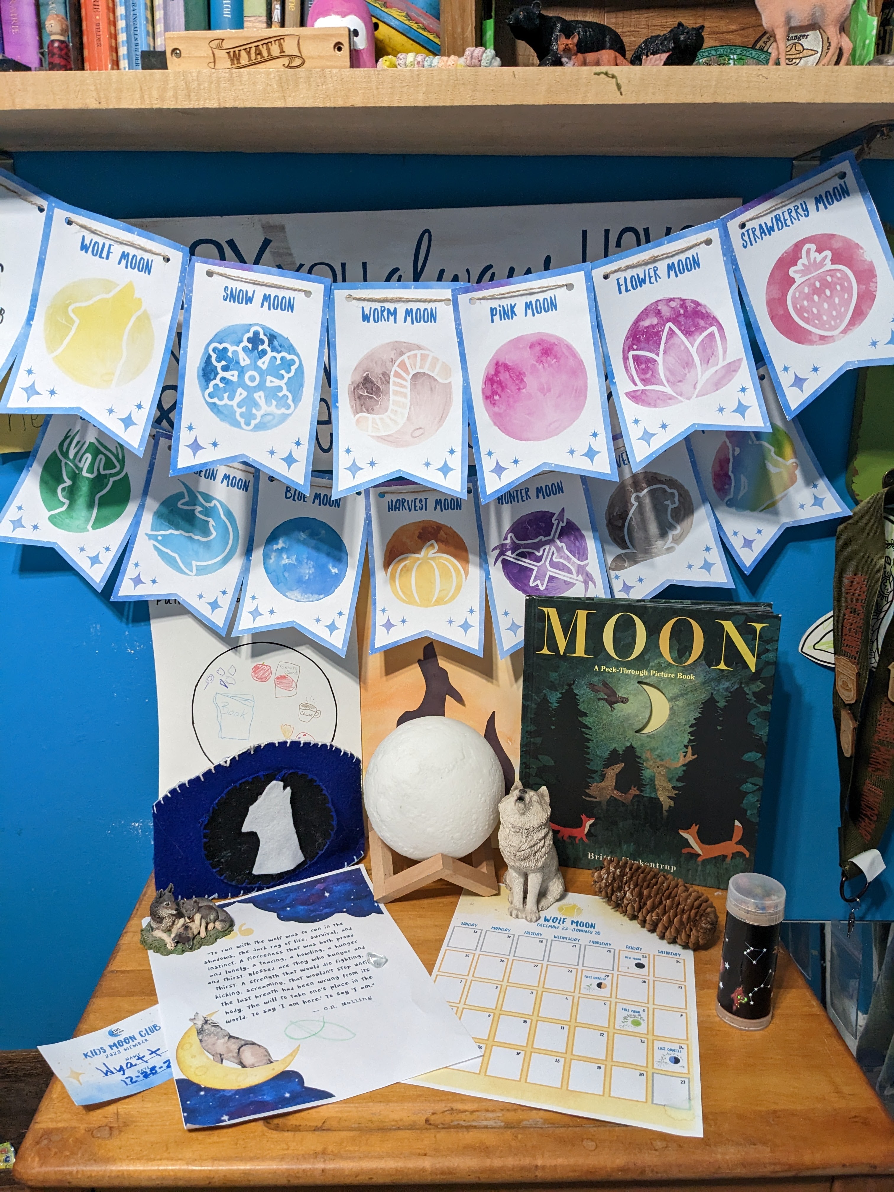 We set up for the Kids Moon Club. We were one of the first families to do the Kids Moon Club, many moons ago (sorry couldn’t resist), so we were able to buy a lifetime membership for the cost of one year, which has been a great bonus. I love how this kids club has actually taught our whole family how to live more in tune with nature and the seasons.