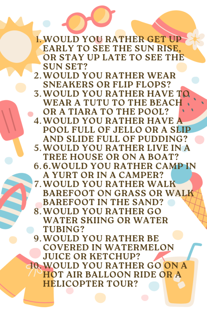 Oh, Erin! I loved your answers and your reasons why! My thought was you could bounce around on jello if you wanted! It’s funny how many people don’t like beaches. I’m not a fan of all the sand getting where you don’t want it and finding it for days after! Thanks for playing along!