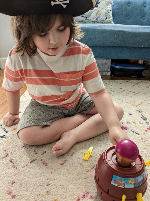 4. Pop the Pig was a big favorite here and we had a game called Sneaky Snacky Squirrel that was also a lot of fun. Games have gotten a bit trickier as he got older but we’ve found a few good ones. Our favorite quick game is a card game called Sushi Go that’s lots of fun.