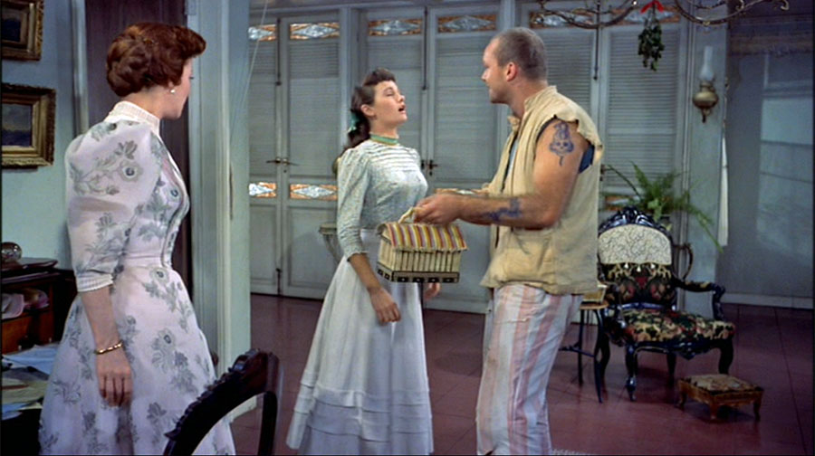 Humphrey Bogart, Aldo Ray, and Peter Ustinov were fabulous in their portrayal of these criminals who find they have a soft spot after all. Bogart plays Joseph, who is the leader of the group it seems, Ustinov plays Jules, who really had some of the best lines and delivery the whole movie, and Ray plays Albert, who was the most sinister of the three – just something about his character gave you the chills, despite the fact that he also wanted to help the family they had originally intended to rob.