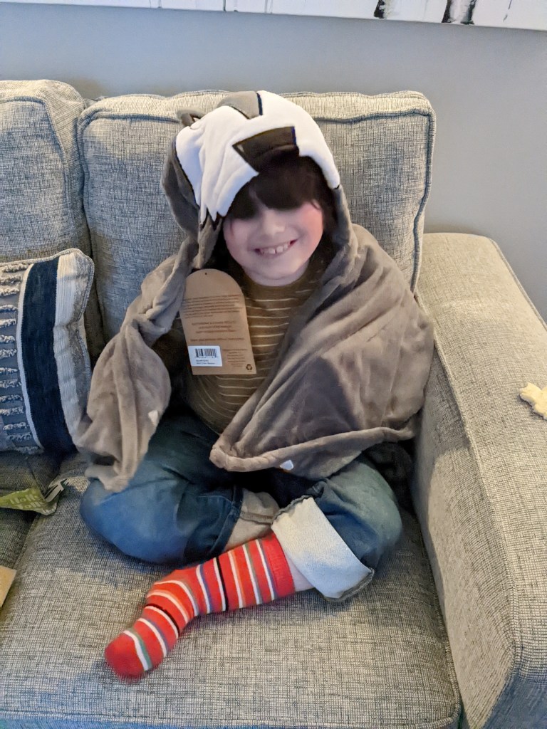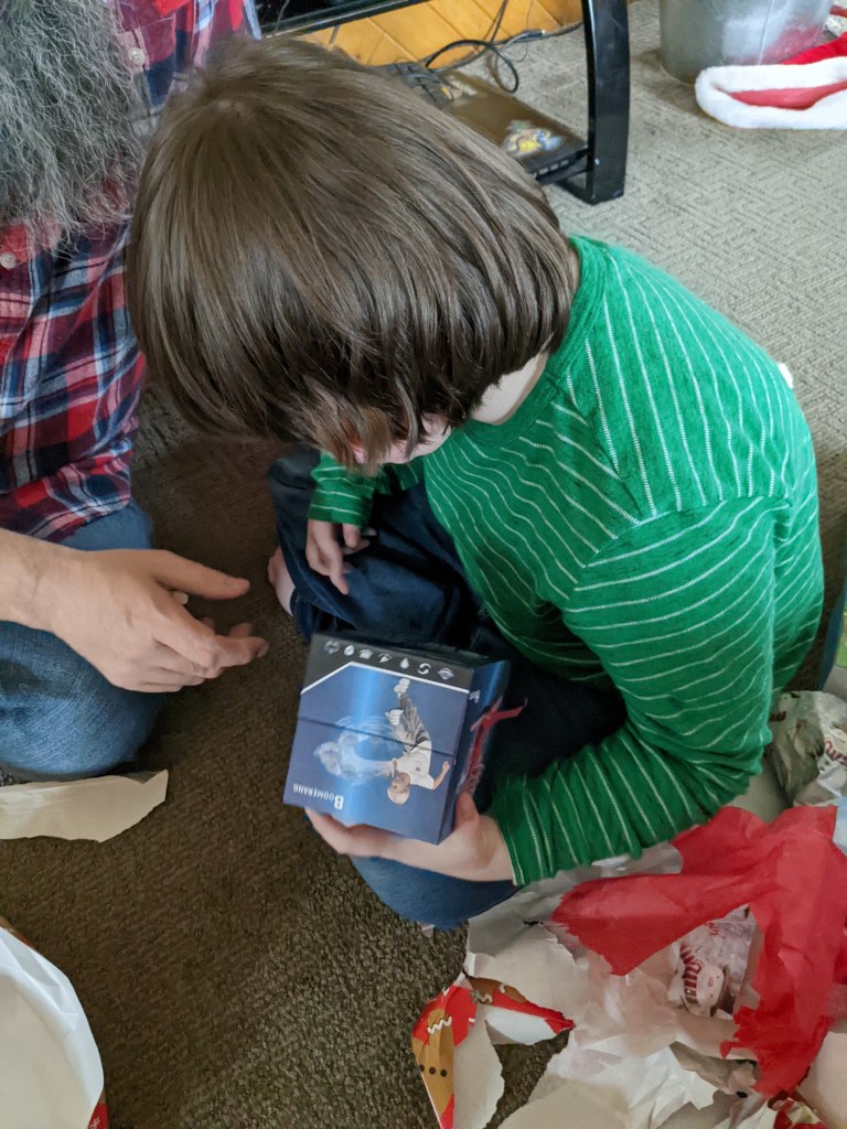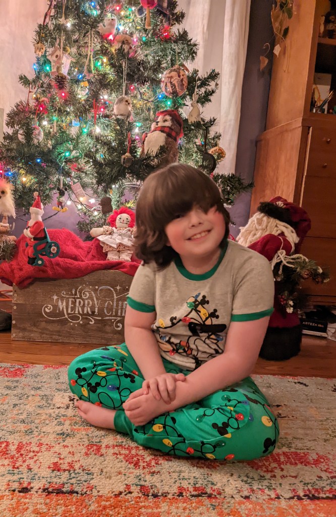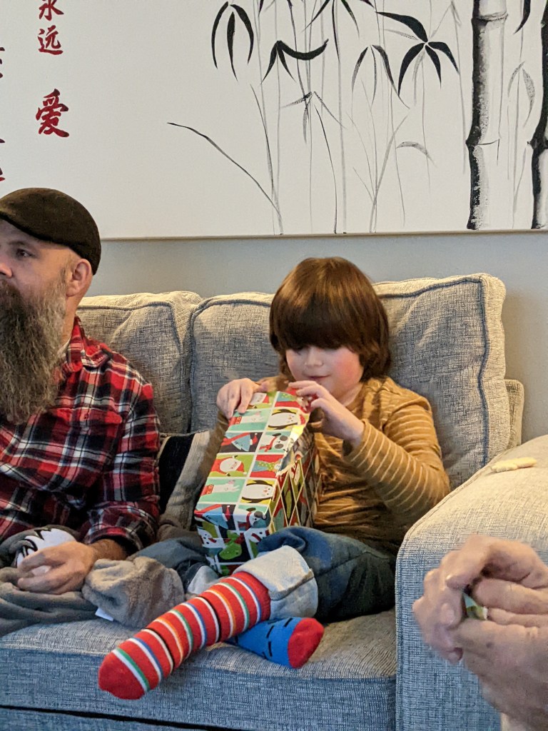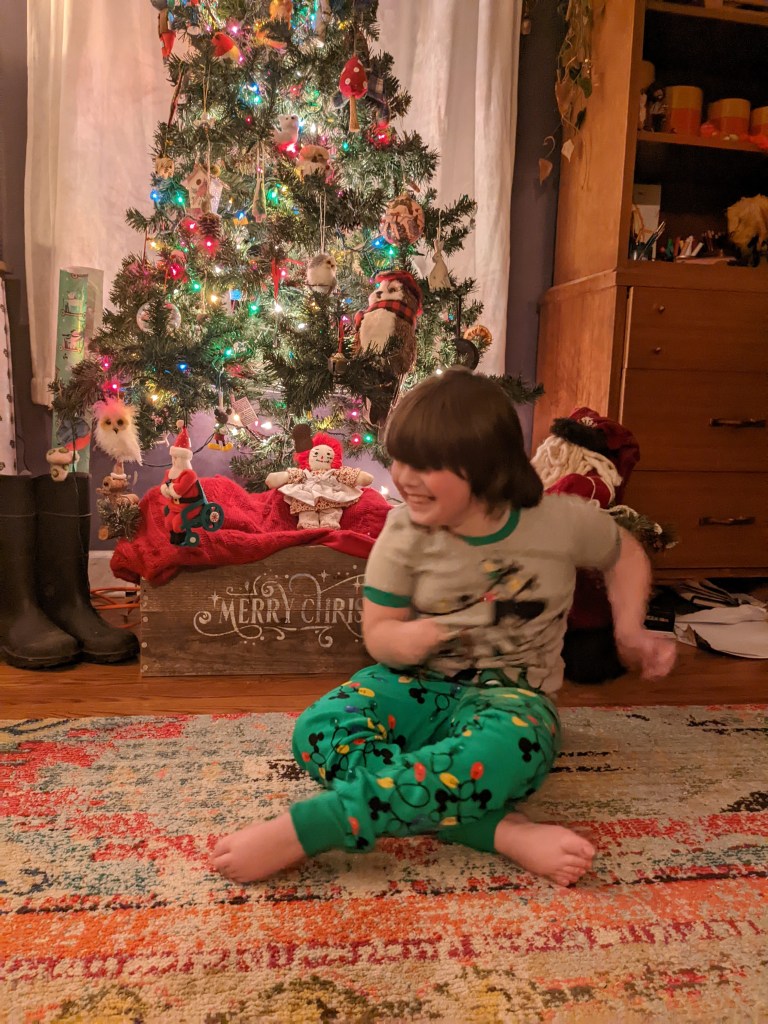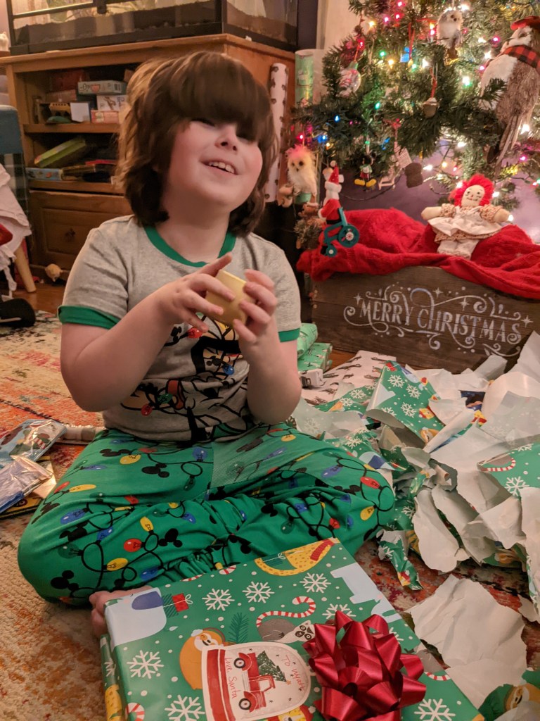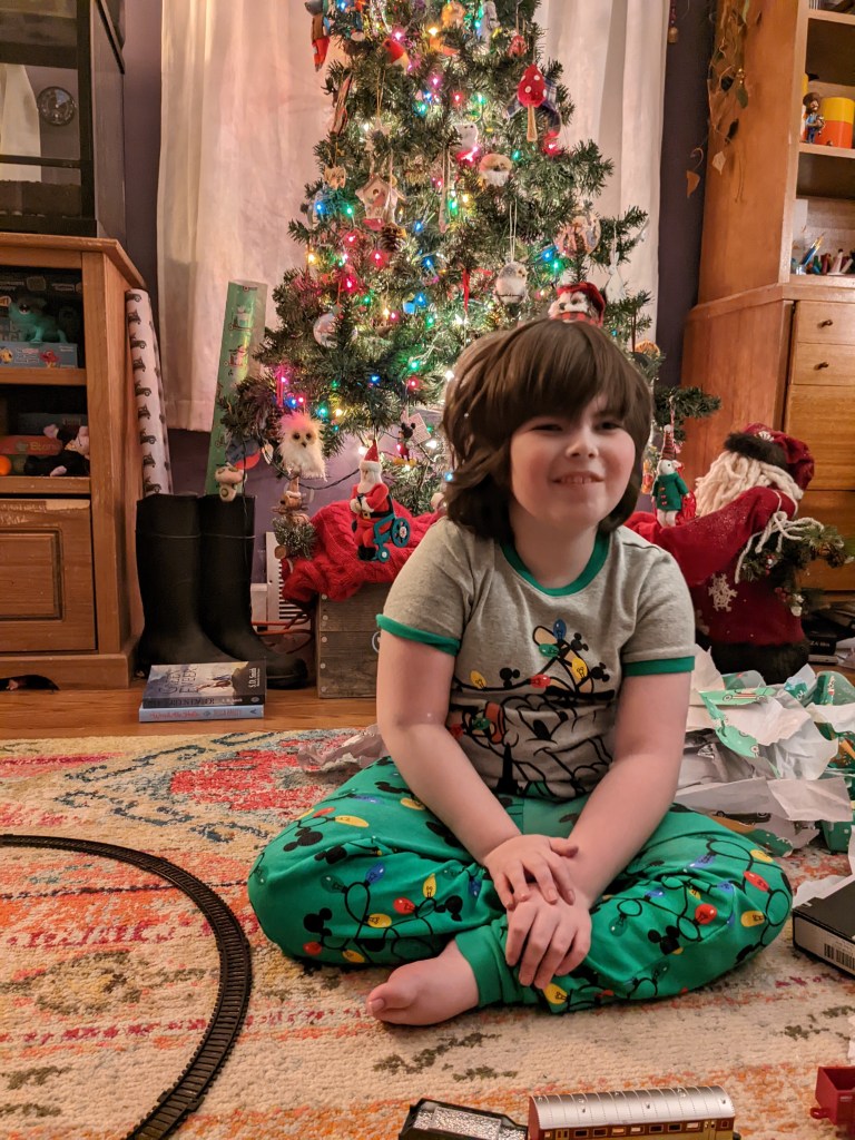 Wyatt got lots of books and games, and a train, which was a last minute curve ball he threw at us. I should have figured, he is really into trains and has been since we learned about John Henry last year. He also loved his Bob Ross ornament I picked up at Bronner’s in Frankenmuth, when I went on my girl’s trip out.
