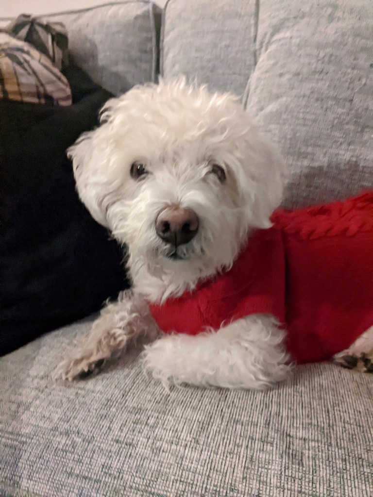 We kicked things off Saturday night at Billy’s mom’s house, as our Christmas Eve plans were changed, since my little nieces were sick and we couldn’t go to Billy’s brother’s house as we had planned. So we went to his mom’s the night before, on Christmas Eve Eve. Wyatt enjoyed spending time with his grandparents and opening his gifts. I enjoyed spending time with them too, and with snuggling with this muppet faced dog Murphy.