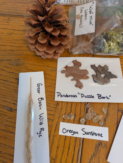 Scouts this past week was really fun as well. We started with going through our Oregon nature box that the pack from Oregon put together for us (we had sent them one from our area as well). The kids and parents loved it. I think one of my favorite parts of Scouts is not only the excitement from the kids, but also seeing the parents involved and excited about the activities. When we did leaf rubbings last month, one of the dads made rubbing after rubbing all by himself at the table, he was just having such a good time. And I love that. It wasn’t an aspect that I had planned for or considered but it has been a cool little extra bonus. This week we all marveled at the neat things that were sent to us – a giant pinecone from a Ponderosa Pine with bits of the puzzle bark as well. The trees have bark that comes off in puzzle like pieces, and it is really cool! They also sent sunstone rocks, which are only found in their area in the condition they are in. Each kid got to take one home too, which was neat. They sent bits of flora from the area, including a rabbitbrush specimen, which they said is everywhere in their area and causes allergies in the fall.
