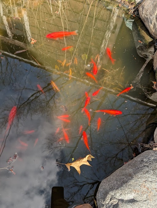The fish were awake and swimming, and very greedy to be fed. She told us to come back and feed them some worms so we are looking forward to that. (well, not really me. Wyatt) We had coffee and we caught up with each other and we talked with Wyatt about all the signs of early spring. About the life we could see emerging, and about what was coming. There were signs of life everywhere. Flowers pushing through the cold ground, birds feeding at her numerous bird feeders, seeds germinating in the earth in her greenhouse, the fish in the pond, and knowing that soon there will frogs and toads lining the rocks that ring the pond. She told us stories of raccoons on roofs, swimming in the pond, the possums that come and hang out in her garage. It was a great time and I am so thankful she is sharing some of that magic with Wyatt.