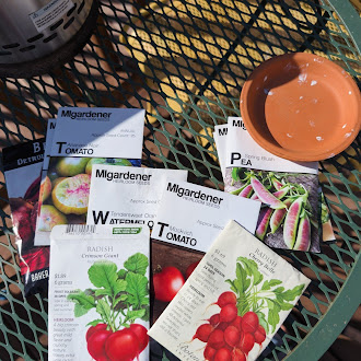 Wyatt and I also started some seeds in honor of the first day of spring. Right now they are living in their starter cells in my office since we have a cold snap again. (It will go back and forth like this for a bit while spring and winter duke it out here in Michigan. ) I dragged out my container of seeds and we went through and chose some that we were able to actually start indoors. Some early season seeds needed direct planting and the ground was still a bit frozen so we had to wait on those. We planted way more than we are going to need: 3 types of tomatoes, 2 types of radish, beets, luffa fours, tigger melons, and orange watermelon. When the ground is soft enough, I promised Wyatt that this year would be the year he could plant watermelon and pumpkins. I am sure they will all be eaten by the squirrels and birds by fall, but we can try!