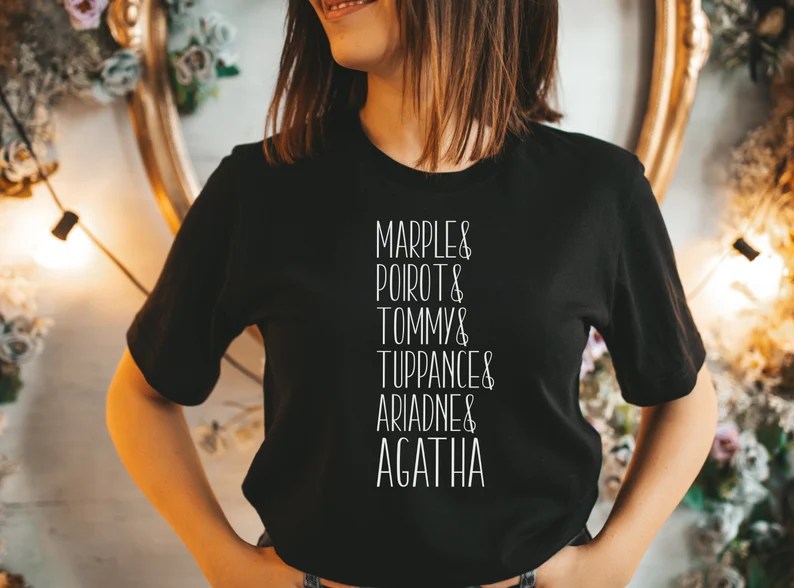 Who is your favorite Christie character? I have to stick with Miss Marple for now, she still reigns supreme for me. With this shirt your favorite armchair detective doesn’t even have to try to solve the mystery of which is their favorite, they can proudly wear them all. (Update: Sadly as of 11/2023 this item is no longer available)