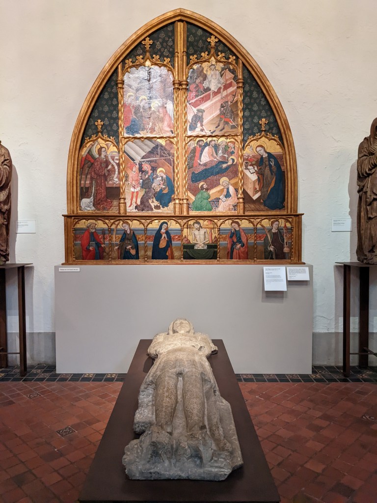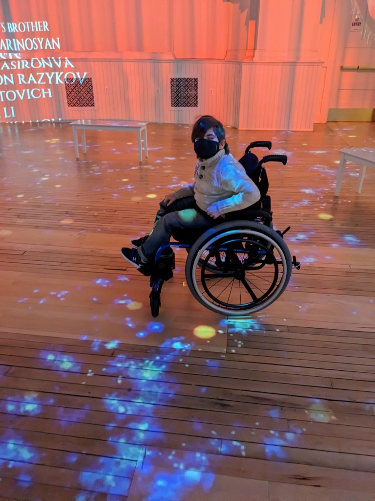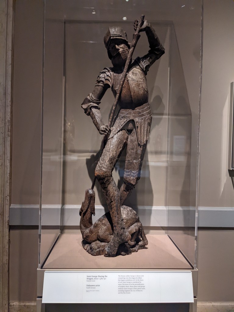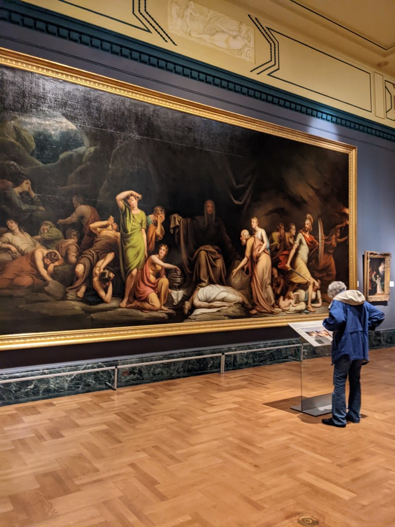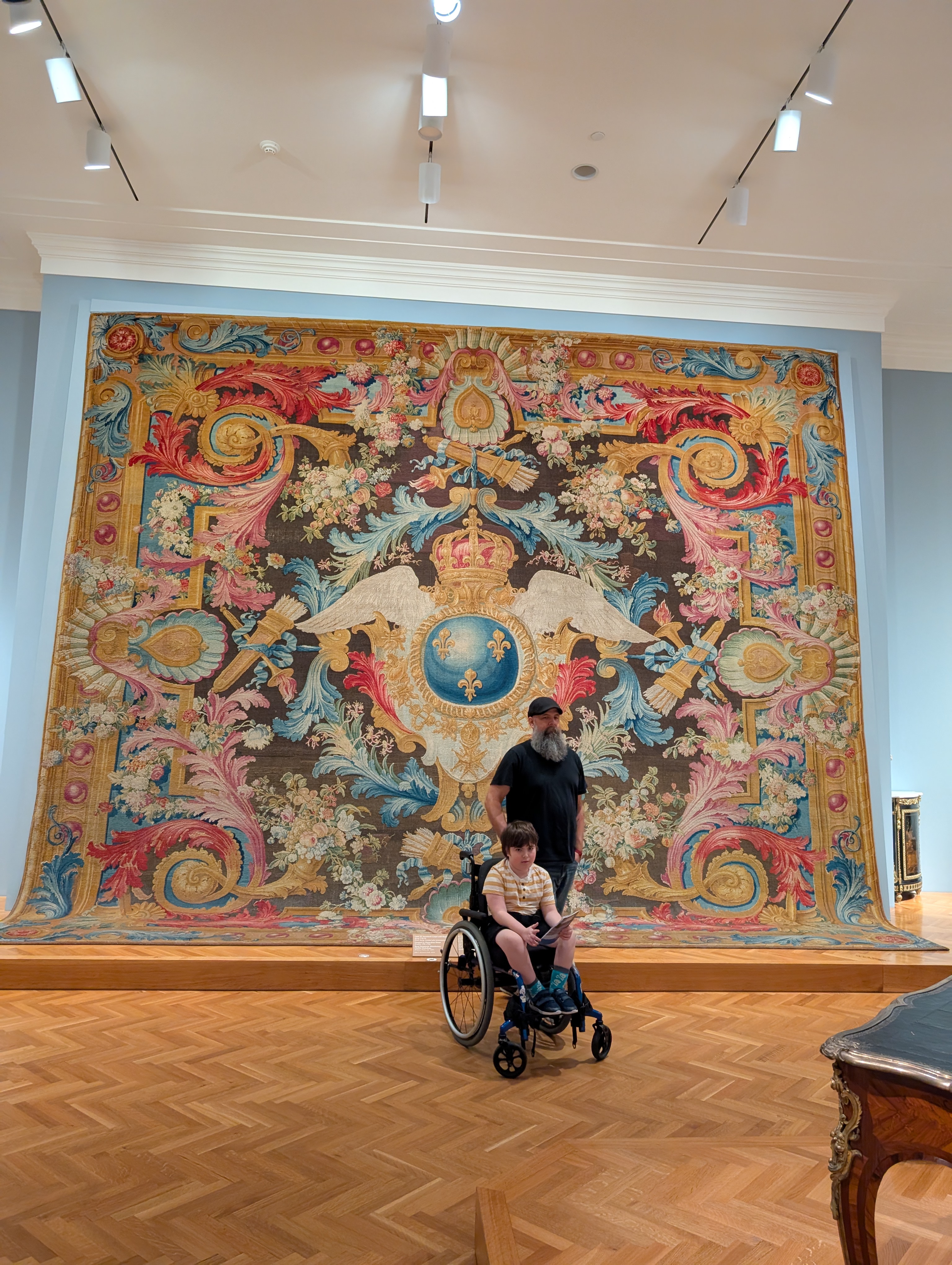 I also may have accidentally set off an invisible alarm system….ok, I did. But I didn’t mean to, and I wasn’t really breaking a rule. There were these chairs, you see, tapestry chairs with wolves in the center, and going into full homeschool mom mode, I was standing next to it, gesturing and pointing to the wolf in the middle and explaining to Wyatt how they were based off fables and blah blah blah – and my hand went over the invisible alarm in my wild gesturing apparently. The alarm was not silent. Wyatt’s eyes went wide and I was like what is happening. A security guard did come over and she told me I set off the alarm, and told me so many people do that – and said that some people even sit in the chairs!