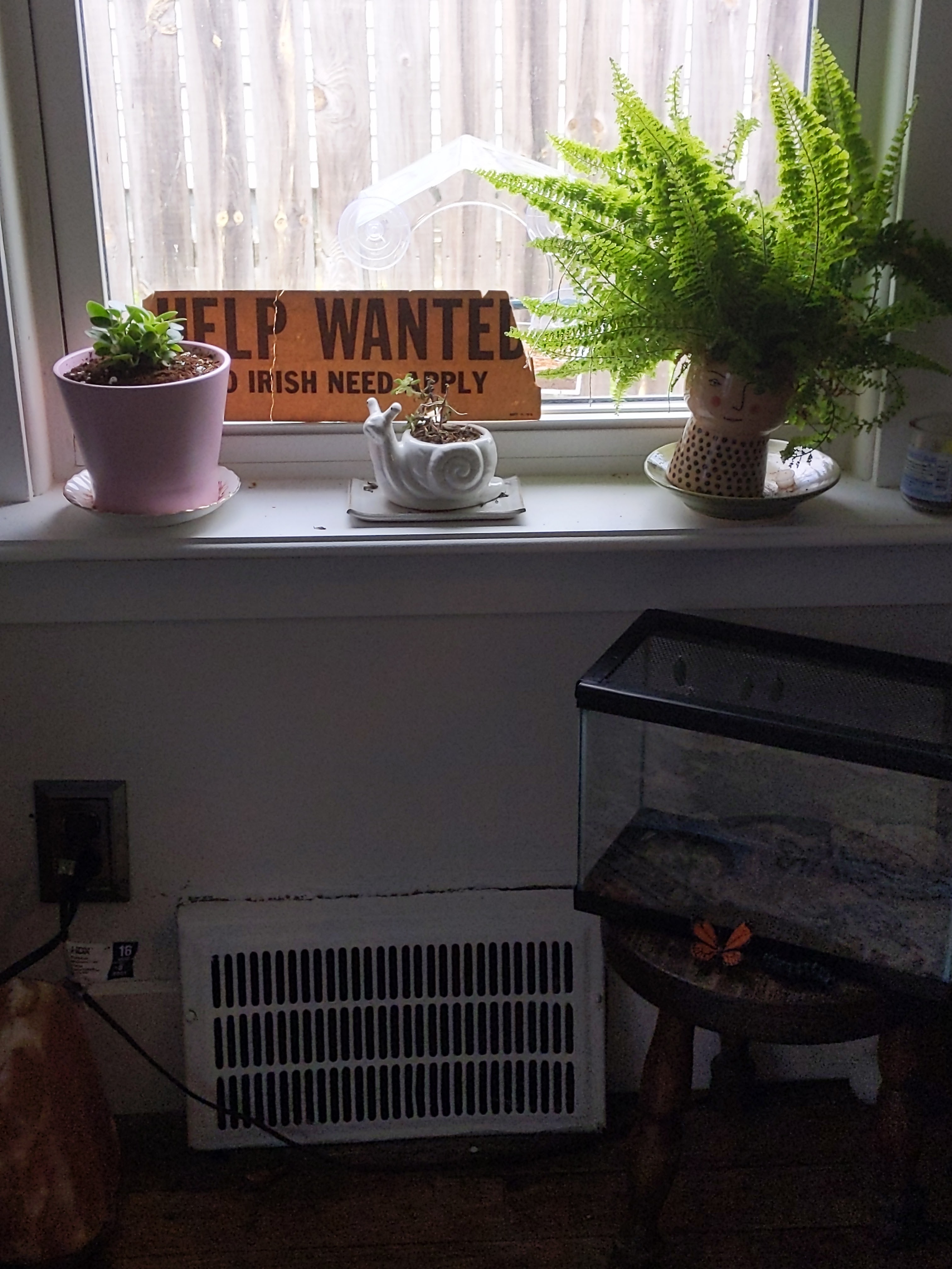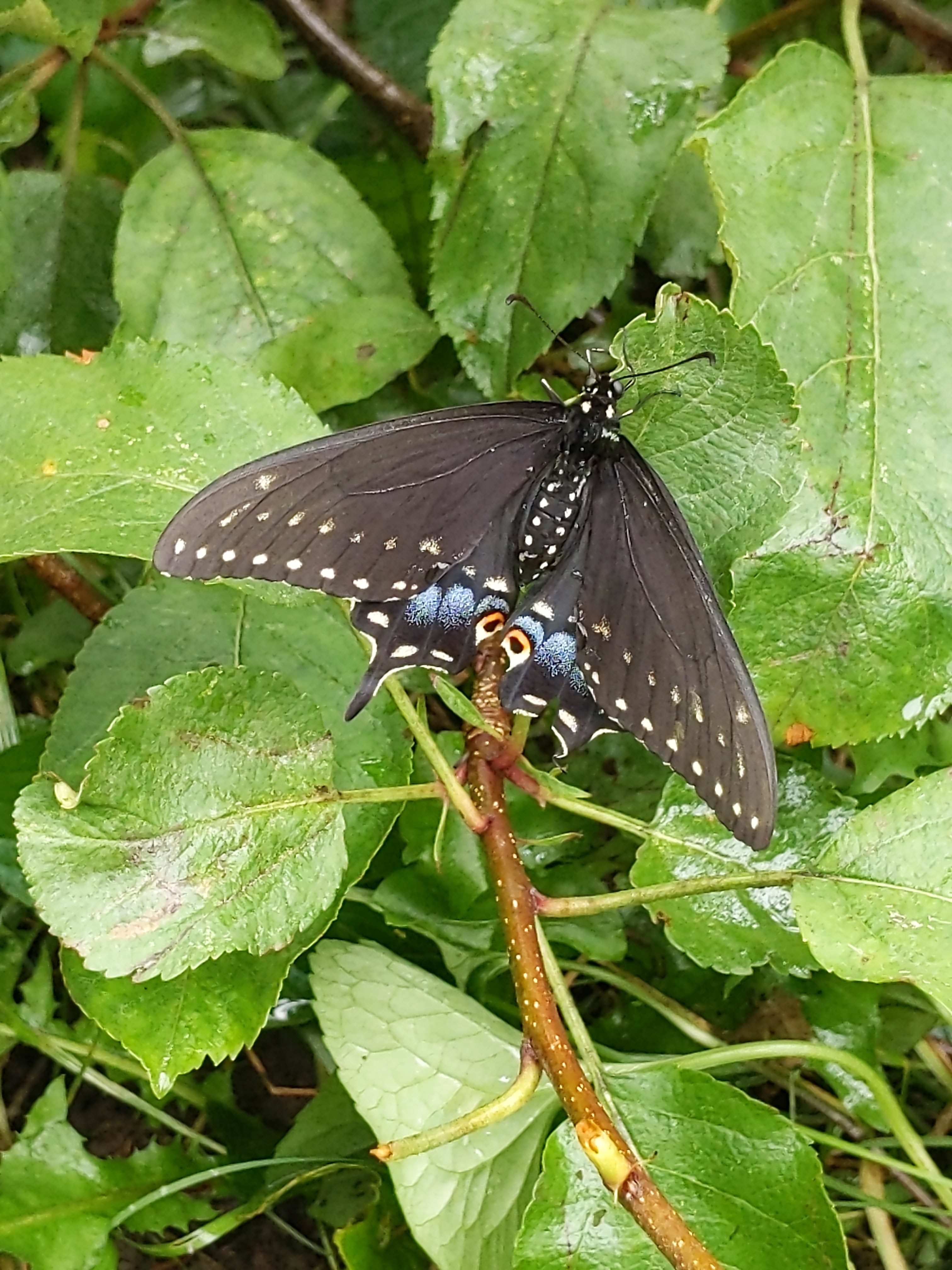 The center was getting ready to close so it was time to hit the wilderness! We stepped outside, and behind the building was a butterfly garden, all yellow and green and full of butterflies! Wyatt was ready to be on the move so we didn’t stick around too much, but I caught sight of Black Swallowtails, Red Admirals, and Yellow Swallowtails before the garden was out of view. We did the short boardwalk through the woods, listening to the wind rushing through the trees, one of my favorite sounds in all the world. I could sit and listen to that for hours, much like people can listen to waves. I also spotted an Indigo Bunting, the first of our many bird spottings! We also ducked into the adorable little wildlife blind building, which was full of really cool painted benches. I loved the frog!!