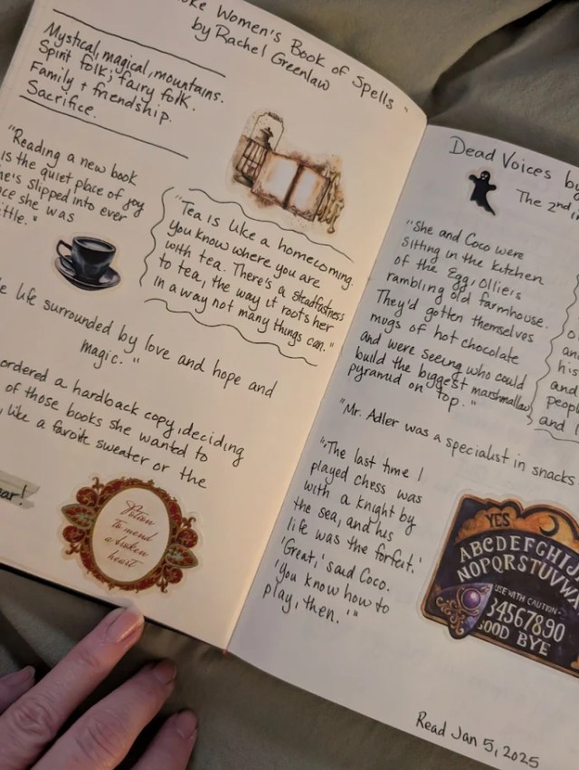 In case you missed Part 1 and Part 2: So, on November 22, 2024 I started a little book book, as I call it, but it is a journal of the books I have read with a few jotted thoughts, quotes I like, and stickers. I am an archivist and chronicler at heart, and I have been having so much fun journaling my reading experience this way. I thought it would be neat to share my favorite quotes from all the books I have read – in different parts of course.