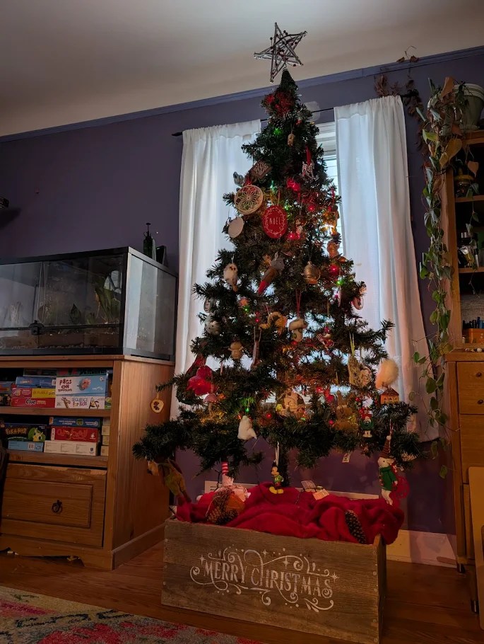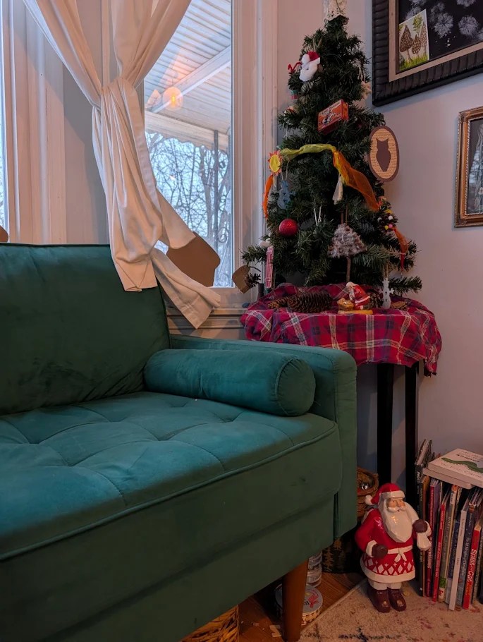 That little Christmas tree, the green one, is covered in ornaments that Wyatt and I have made together every year since he was old enough to help. I need to pick an ornament for us to make together this year still, but I love this little tree.