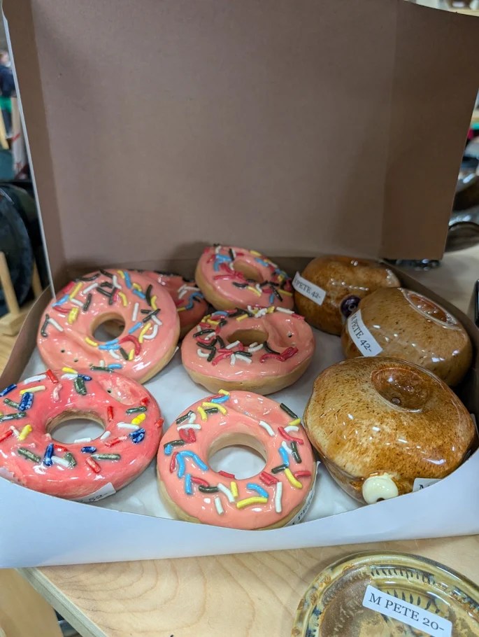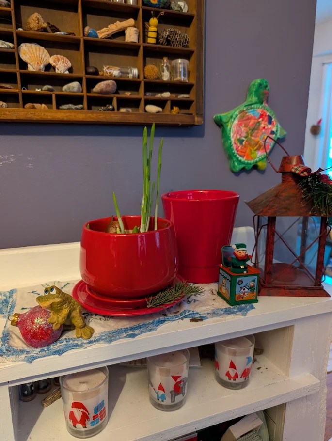 Sunday morning I got up early and drove my friends and I through a winter weather advisory to the Annual Potter’s Market that we have been going to every year. I wore my mask and I am glad that I did, since my family is sick and I was maybe coming down with it. We all poked around, putting stuff in our baskets, taking it out, adding new things. I just love it, and we saw such cool items! I bought more tiny things. I am obsessed for some reason (I’m a goblin, that is why). I did buy a small turtle for Wyatt’s stocking, and I think he will like it.