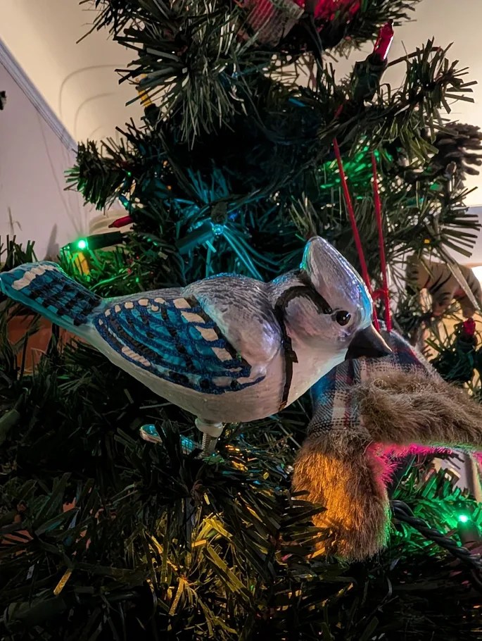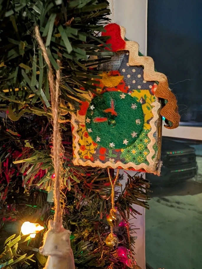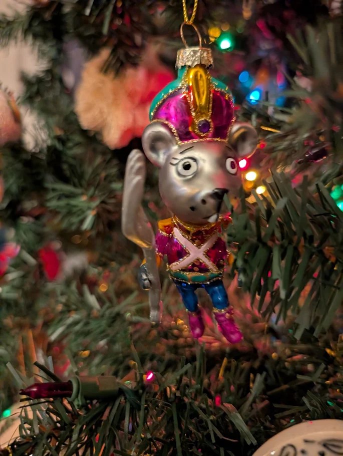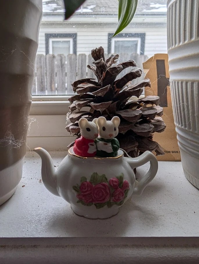 I have been hiding little bits of Christmas places this year. A little teapot ornament with mice tucked in among the plants on the sill, a tree ornament from 1978 on a shelf near my books. I like running across these little bits of the holiday as I go about my day.