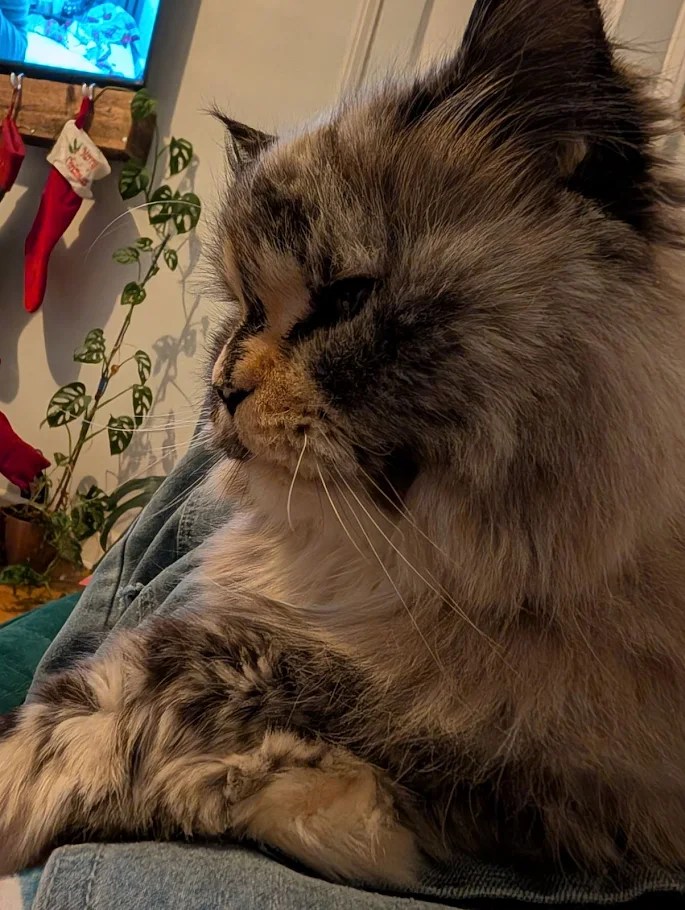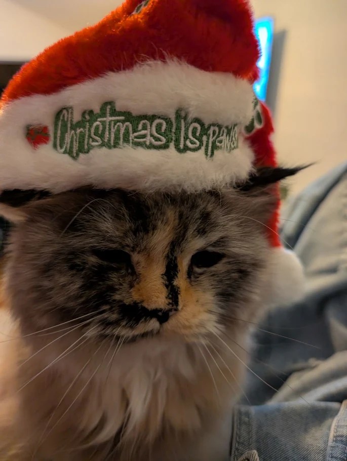 I took the hat off after the photo, and she forgave me. She got all cuddly and warm and purred away, which is always nice in the winter isn’t it, a nice warm cat on your lap?