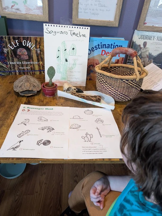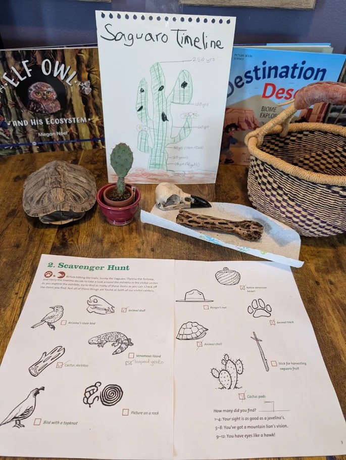 I mentioned that Wyatt is studying deserts and one thing that I thought make it more fun this December is filling out the paperwork to get another junior ranger badge online. We are doing the steps for the Sonoran Desert National Park junior range badge, and I was just going to skip over the nature center scavenger hunt, when I realized we had a lot of the items on the list here in our house.