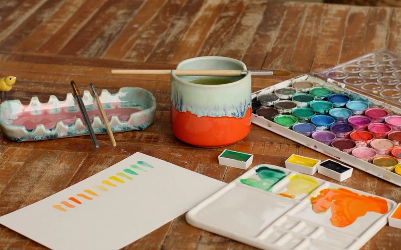 With the amount of painting that happens in this house, it is something that we tend to spoil ourselves with. I love this potter, and have a few mugs and I love that she does them in her potters shed in the yard, like my MIL. One of my mugs even actually looks like this paintbrush rest. I love that it is dual purpose and keeps this up and out of the way! I would buy anything from her and she has so much cute Christmas stuff in her shop right now too!