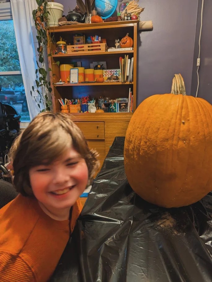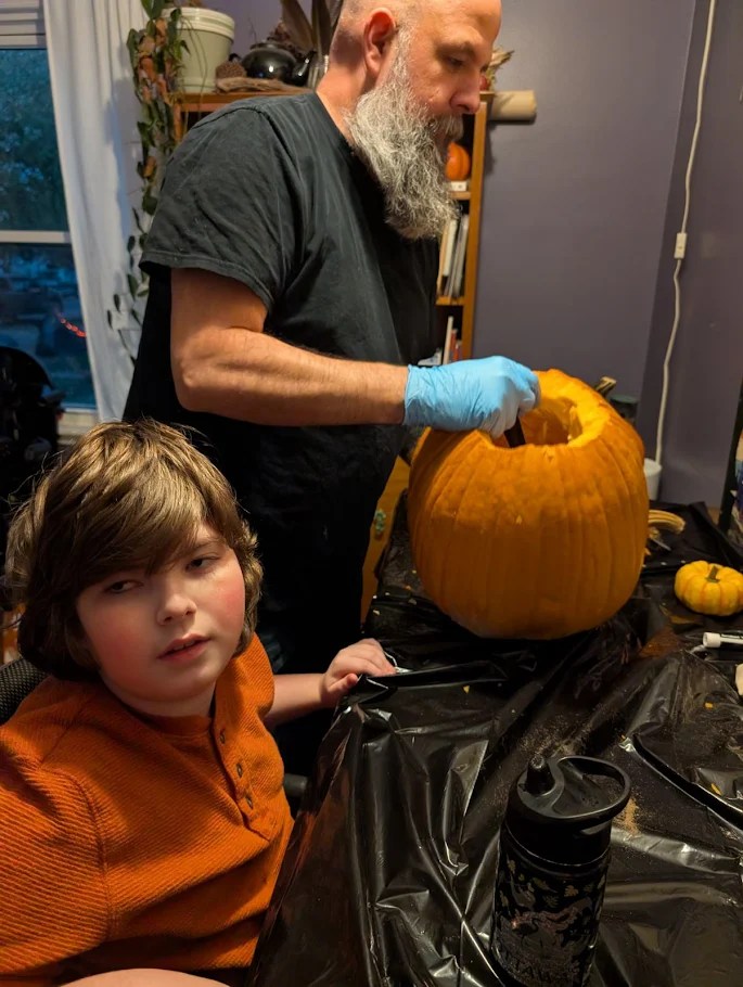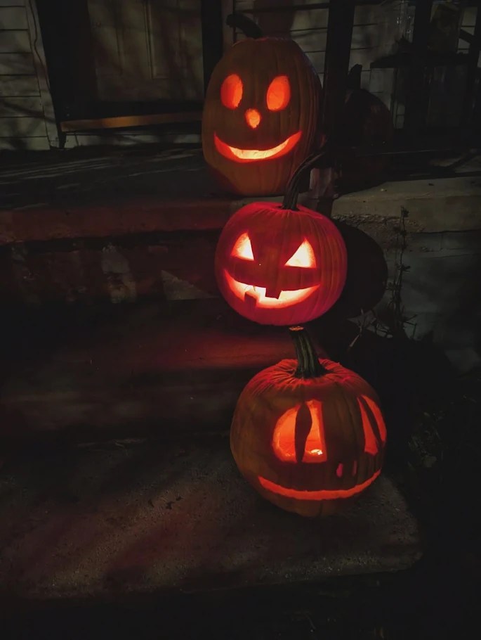 Our Jack O’Lanterns from top to bottom – Wyatt’s smiley happy one, Billy’s classic version, and my dragon/lizard.
