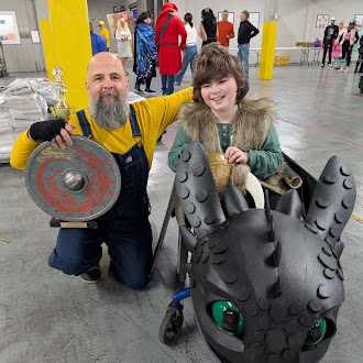 I mean, his costume is pretty amazing. Billy did such a fantastic job making the Toothless head and the rest. I was in charge of the Hiccup/Wyatt while Billy did the rest. Wyatt absolutely loved his costume. My little viking. And strangely, this is the second time that Wyatt was a viking – the first was when he was one. This time it was his choice though.