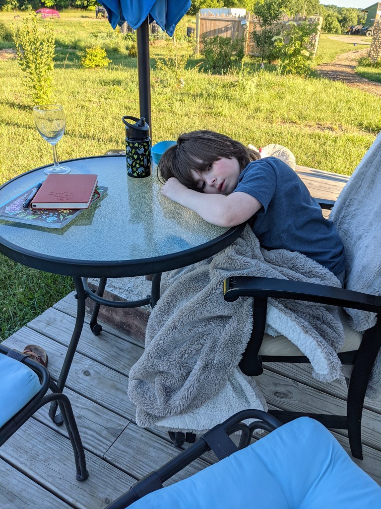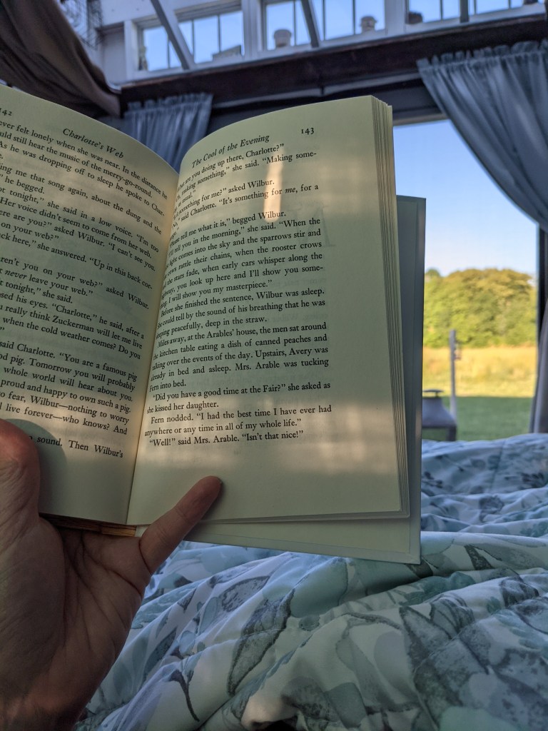 It was a lovely lazy day. All the fresh air and exploration zonked a little someone out, so we took him to bed and I read a bit of Charlotte’s Web to him before he officially turned in.