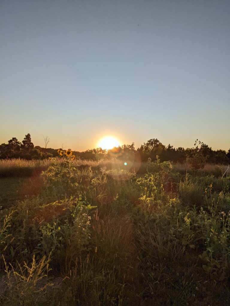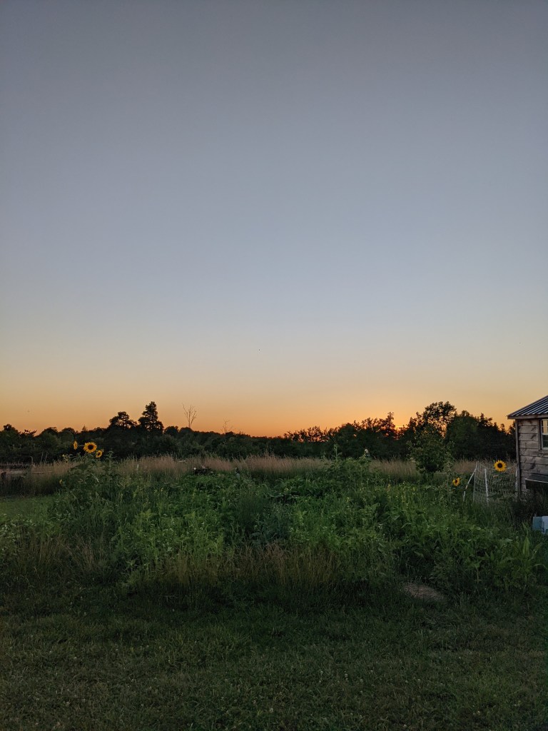 Then Billy and I caught the sunset, and sat and chatted while watching the deer in the meadow for a long while before turning in ourselves.