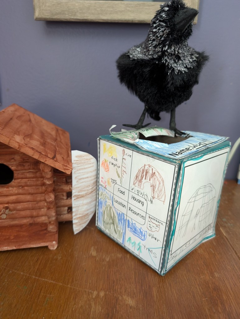 Since I started with American History, I might as well talk about that for a minute. I have been rolling Michigan history up with American history, adding in the lessons about Michigan as necessary in the timeline. I feel like we are walking the timeline of history here. What do you expect from a woman who has a history degree though? We really dig in here. We started with the Native Americans of Michigan, specifically the Anishinabe. We read Birchbark House, which was fantastic, and made a birchbark house, a winter cabin, and learned more about the way of life of the Anishinabe. From there we wandering into the fur trade, and read The Littlest Voyageur, which I felt was a less traumatic way to learn about this time period. It was less historically accurate, as it was told from the viewpoint of a squirrel, but my introduction was Eagle Fur by Robert Newton Peck which was extremely violent, honestly, and I was maybe 12 when I read it. It has stuck with me forever. (As a side note, his book A Day No Pigs Would Die also has haunted me forever)