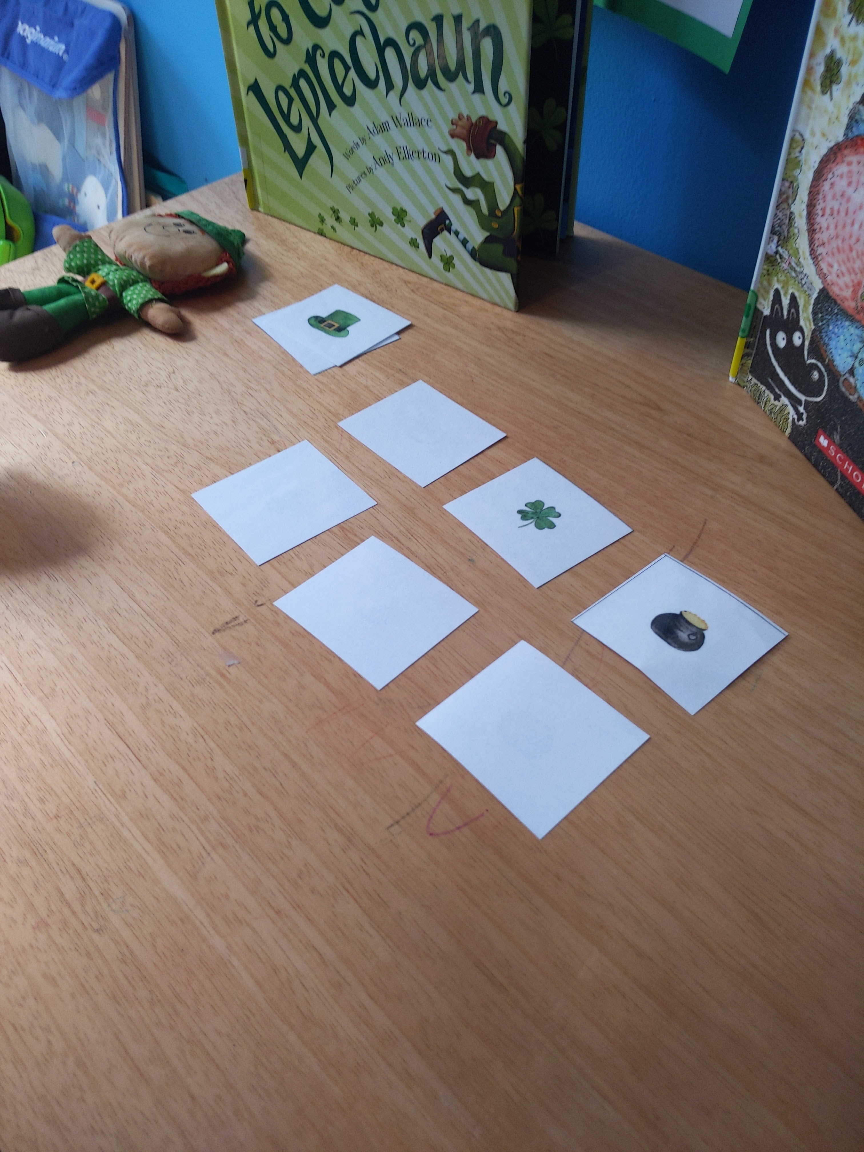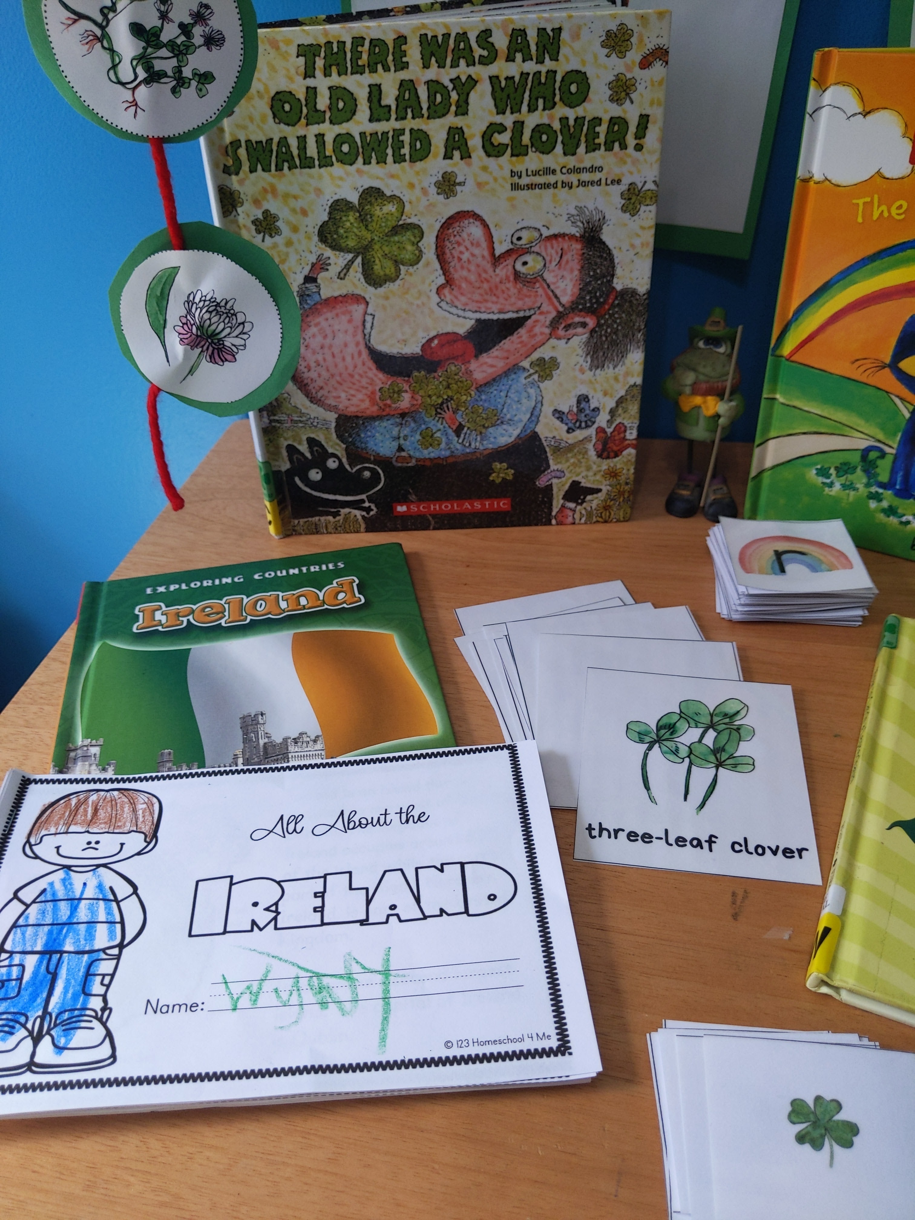 This week and next we are focusing on elements of Ireland – from farm animals to legends and folktales to clover, lucky or not. And some rainbows just for fun. This week we focused on a more St. Patrick’s Day theme for the week, learning about clover and leprechauns and of course, the kid version tale of St. Patrick’s Day.