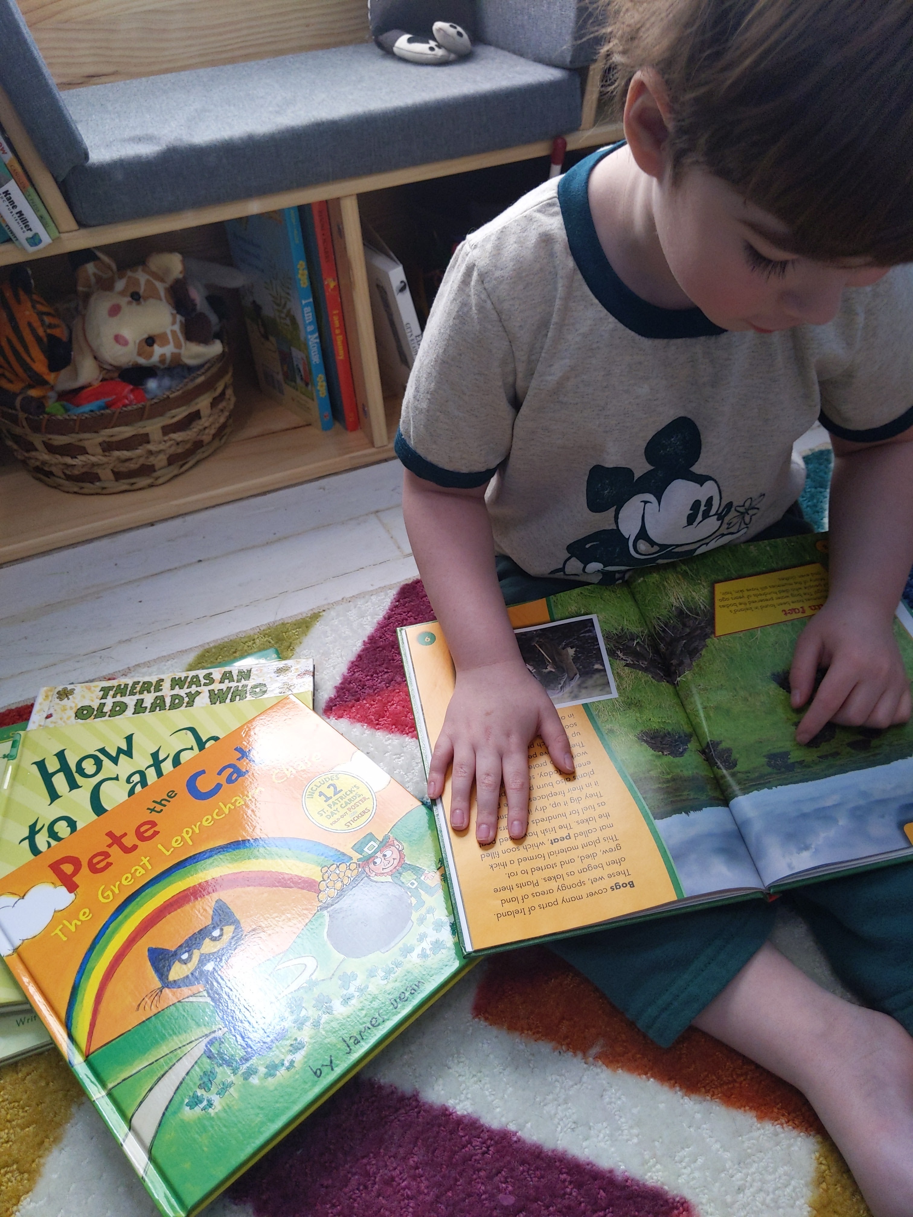 We read books and made a few crafts as well! I kind of love the snake he made – and the leprechaun turned out pretty cute too! He did want me to draw the face, I guess he didn’t want to do that part. But it was good practice for his cutting skills, something that is really hard for Wyatt with his cerebral palsy. And actually really hard for me to show him too, since he is a lefty and I am not. I end up sitting behind him and helping guide his hand that way, with my left hand. It is a wonder anything gets actually cut! It’s definitely a group effort. We also had quite a few fun worksheets this week, that included graphing, sorting, sequencing, and then a few lacing cards too.