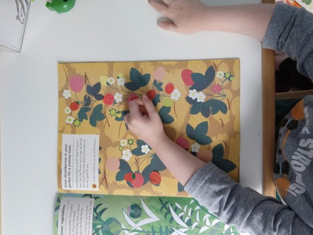 Tuesday, we continued working on the letter H and vocabulary, did some sorting and pattern work, and started our fun counting book, complete with little wooden bees. In the afternoon we set up a pollination creation garden, where Wyatt created a little garden (inspired by our Monet’s waterlilies art from pond week) and I filled two of the flowers with powdered Tang to “bee” the pollen. Then we dipped a paintbrush in water, and used it to transfer the pollen from flower to flower. It turned out really cute!